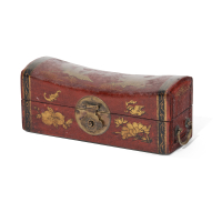 Lacquered partially gilt-wood, decorated with dragon, phoenix, flowers and fruits, metal fittings.