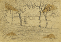 Lot completed by: Landscapes, 1954, pencil and charcoal on paper, 7.87 x 11.22 in., signed and dated lower left recto.(2)