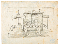 Ink and mixed media on paper.