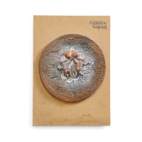 Enameled ceramic on woodboard.