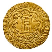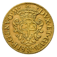 Periodo dei Dogi a vita (1339-1528) - Simon Boccanegra Doge I (1339-1344) - Genovino - Diritto: castello in cornice a otto archi con ornati trilobati e stellette; rose a cinque petali nel concavo degli archi - Rovescio: croce patente in cornice a otto archi con ornati read all