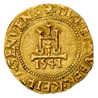 Governo dei Dogi Biennali (1528-1797) - Scudo d'oro 1541 - Diritto: castello con data sottostante - Rovescio: croce ornata e fogliata - gr. 3,38 - Sigle CG - Rara - q.SPL