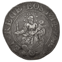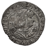 Gian Giacomo Trivulzio Conte (1487-1518) - Grosso da 6 Soldi - Diritto: stemma ornato di cordini e fiocchi ai lati - Rovescio: il Santo in piedi con lo scudo nella mano sinistra e con la lancia nella mano destra nell'atto di trafiggere il drago - gr. 3,27 - Piccole read all