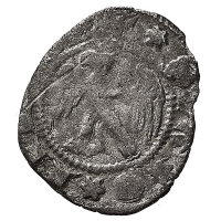 Repubblica (1350-1396) - Mezza Petachina - Diritto: aquila coronata ad ali spiegate - Rovescio: croce patente entro cerchio perlinato - gr. 0,43 - q.BB