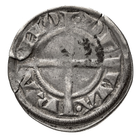 Mainardo II e Alberto II Conti (1258-1271) - Grosso Aquilino - Diritto: croce che intereseca la legenda - Rovescio: aquila di fronte con le ali spiegate e la testa volta a destra - gr. 1,57 - Rara - Lievi pieghe e fratture al contorno, q.BB