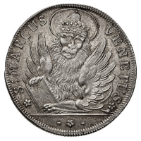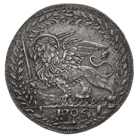 Alvise II Mocenigo (1700-1709) - Tallero o Medaglia da un Filippo 1706 celebrativa del trattato di alleanza con il Cantone svizzero dei Grigioni - Zecca: Venezia - Diritto: il leone di San Marco, stante a sinistra con la testa di fronte su un paesaggio montano, regge read all
