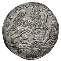 Governo dei Dogi Biennali (1528-1797) - Scudo Stretto 1714 - Diritto: la Vergine con il Bambino, coronata di stelle e seduta sulle nubi - Rovescio: croce patente accantonata da quattro stelle - gr. 38,33 - BB