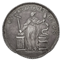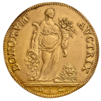 Paolo Renier (1779-1789) - Osella da 4 Zecchini Anno I (1779) - Zecca: Venezia - Diritto: l'Abbondanza stante di fronte tiene una cornucopia con la mano sinistra, mentre nella mano destra stringe una seconda cornucopia capovolta, dalla quale escono delle monete, ai suoi read all