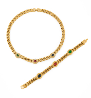 Groumette link design in golden metal, with Swarovski crystals and coloured cabochons.