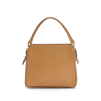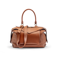 honey boar leather, brown logoed canvas lining. Double boar leather handles. Zipper closure. Silver-tone metal hardware.