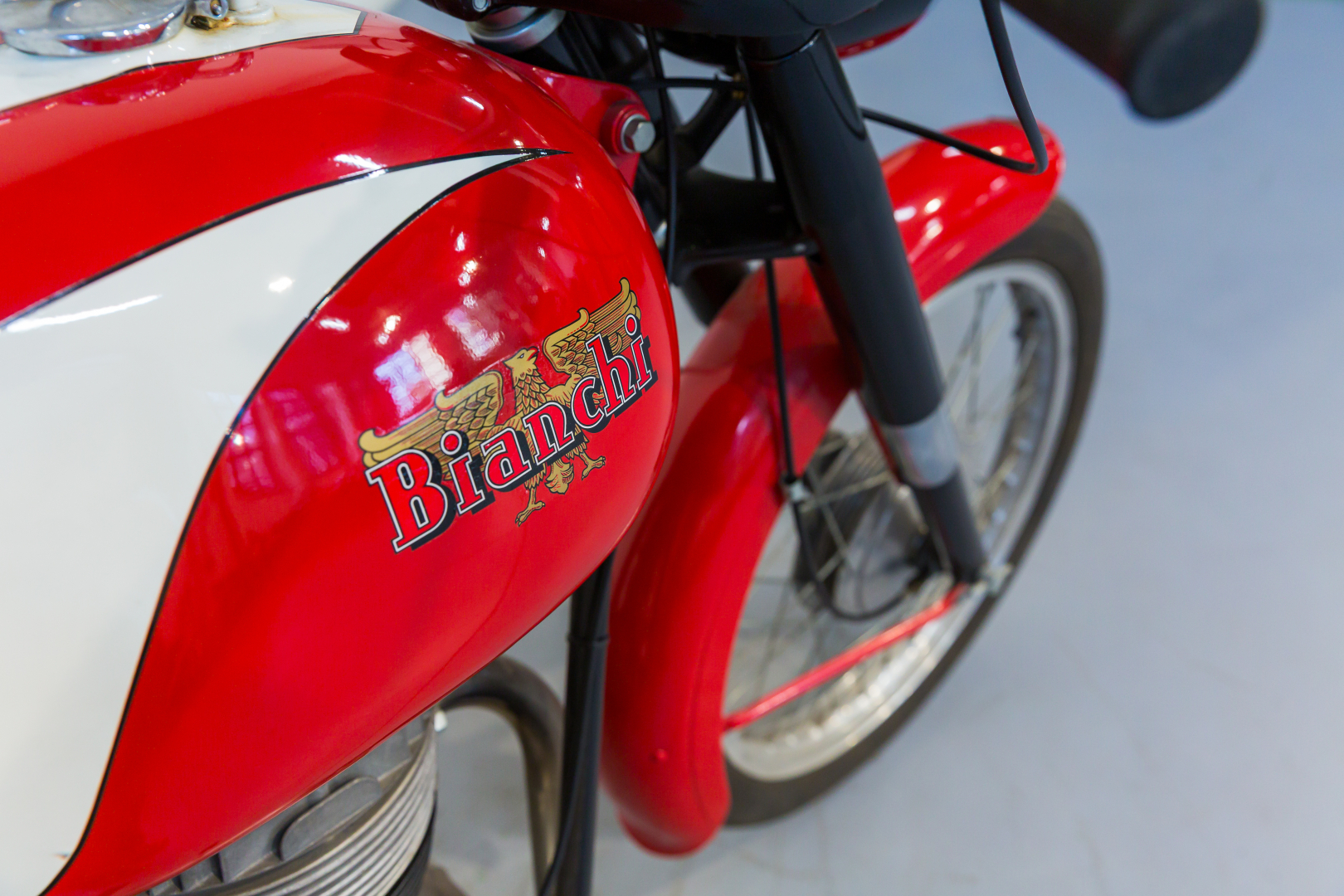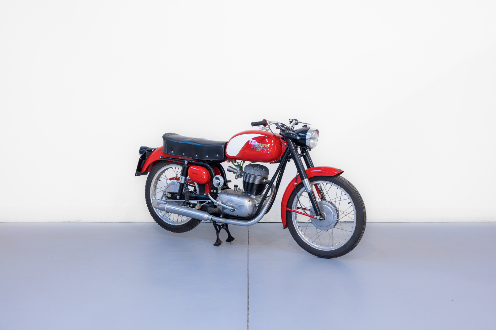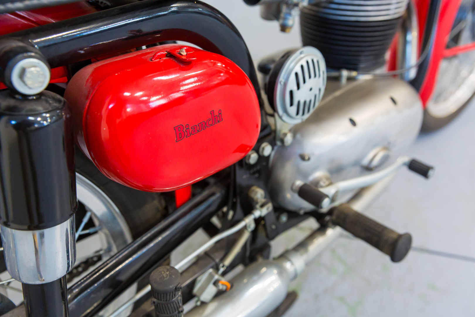 Founded in 1855 by Edoardo Bianchi, the company—long known for designing and producing reliable, robust motorcycles—upheld these qualities with the 1954 Tonale model. Powered by an air-cooled vertical four-stroke engine with kickstart and four-speed gearbox, it featured a double-cradle steel-tube frame, telescopic fork, and swingarm rear suspension with hydraulic shock absorbers. Offered in Turismo, Gran Turismo, and Gran Lusso versions. The Gran Lusso offered here is complete, restored, and in excellent preserved condition. A general inspection is recommended before use.