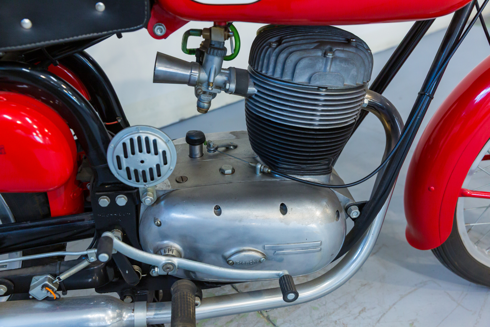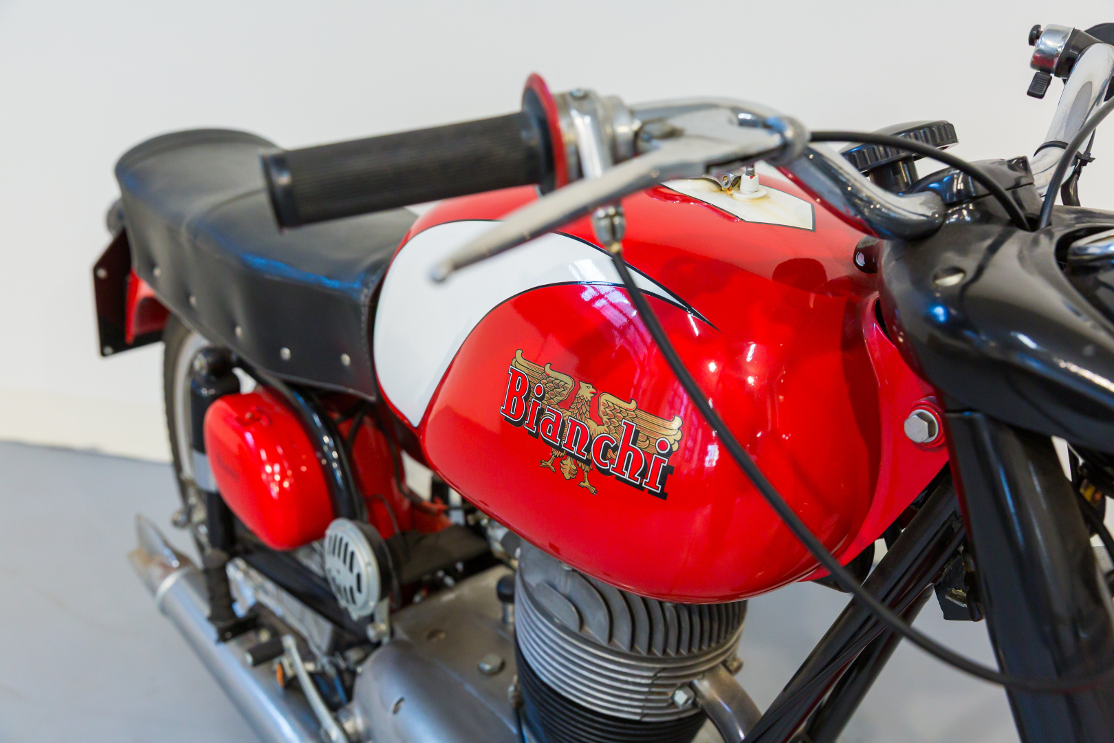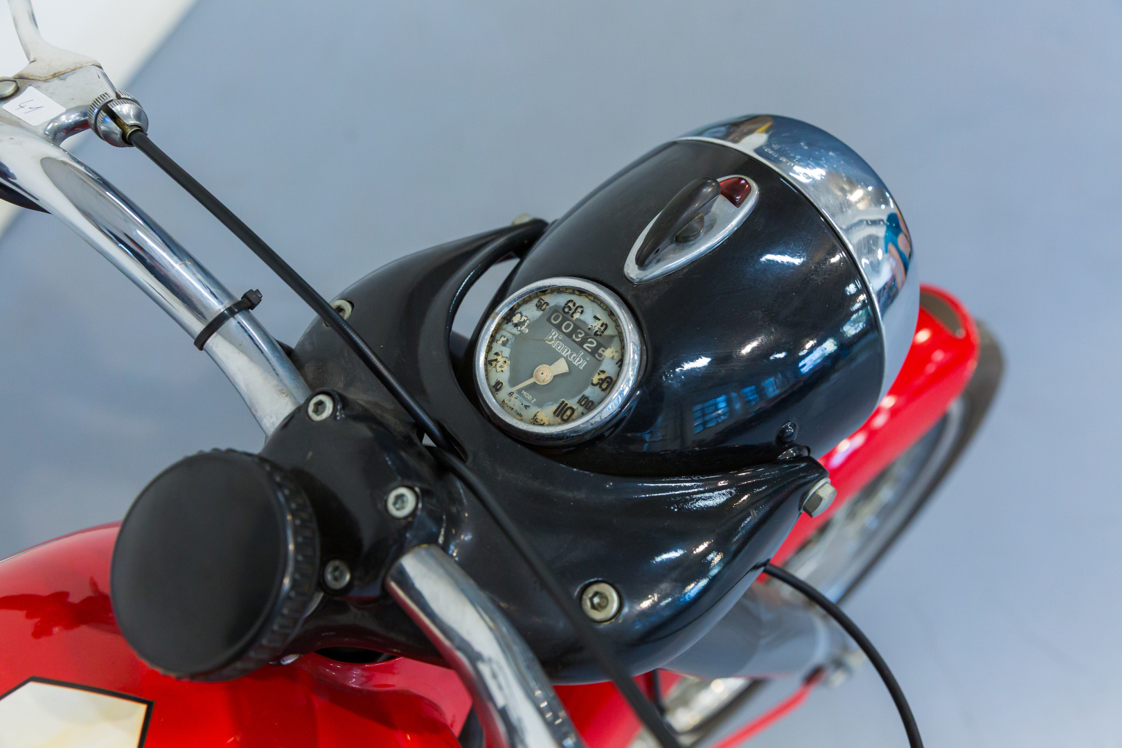 Founded in 1855 by Edoardo Bianchi, the company—long known for designing and producing reliable, robust motorcycles—upheld these qualities with the 1954 Tonale model. Powered by an air-cooled vertical four-stroke engine with kickstart and four-speed gearbox, it featured a double-cradle steel-tube frame, telescopic fork, and swingarm rear suspension with hydraulic shock absorbers. Offered in Turismo, Gran Turismo, and Gran Lusso versions. The Gran Lusso offered here is complete, restored, and in excellent preserved condition. A general inspection is recommended before use.