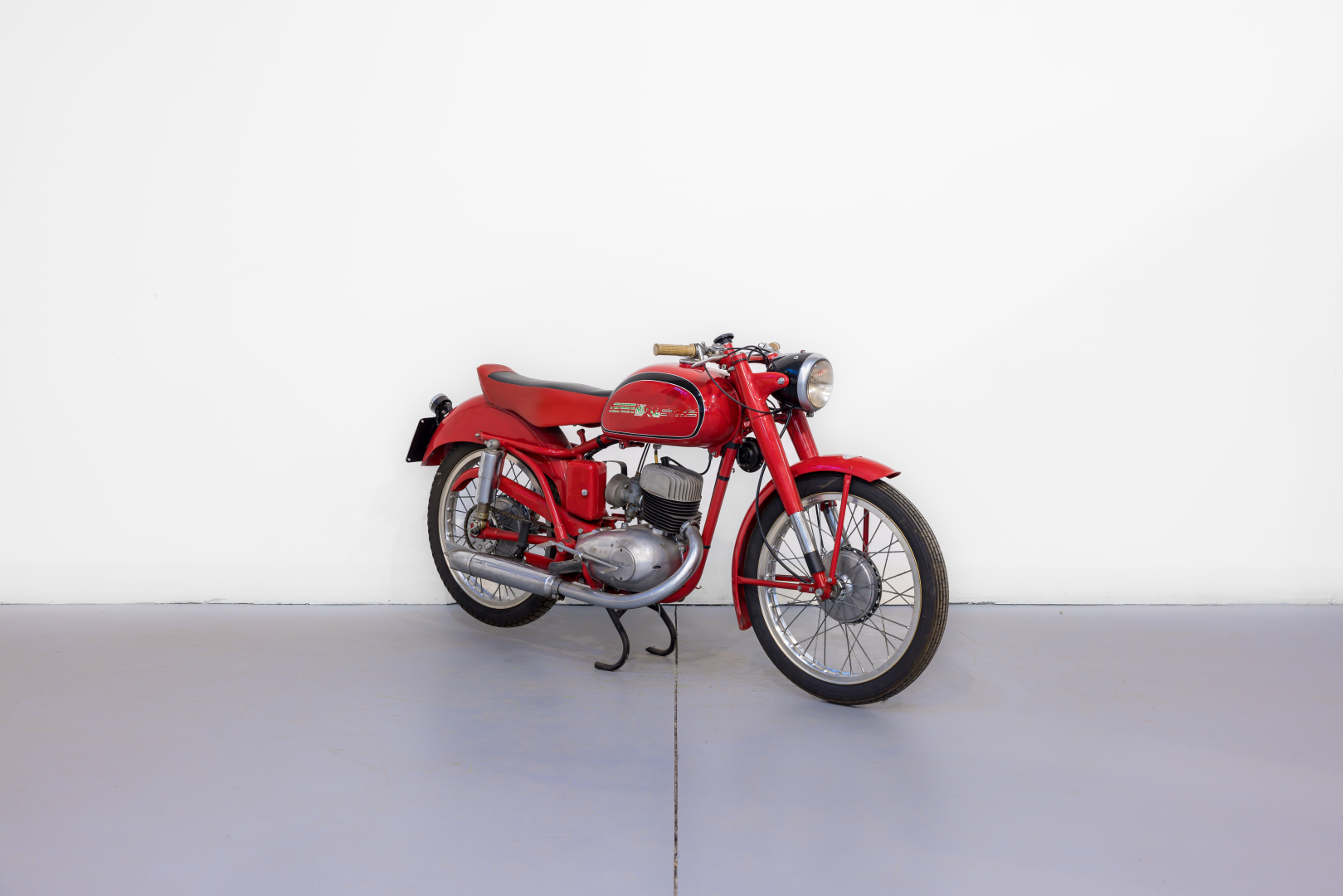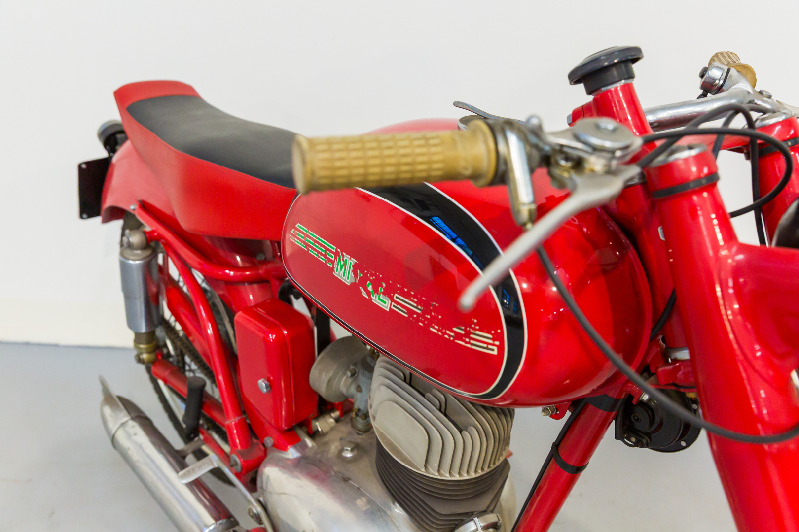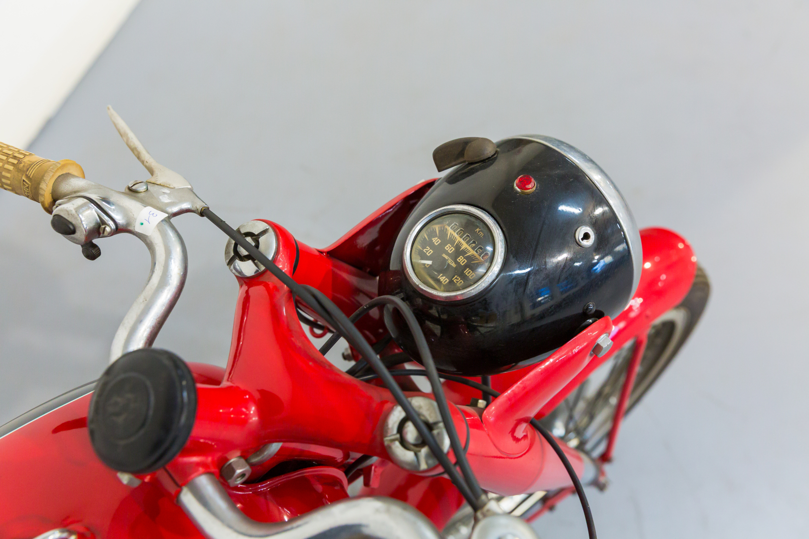 MI‑VAL was one of many companies that began producing motorcycles and scooters after the war to help motorize the country. The Brescia-based firm focused immediately on agile, essential motorcycles with two-stroke engines. Among these, the 175 stands out, powered by a lively engine rated at 9 hp with a four-speed gearbox, built on a single-cradle frame with a semi-hydraulic telescopic front fork and a rear swinging arm assisted by twin hydraulic shock absorbers. The 175 offered here, in the L version, is preserved and in good condition. For parts use.