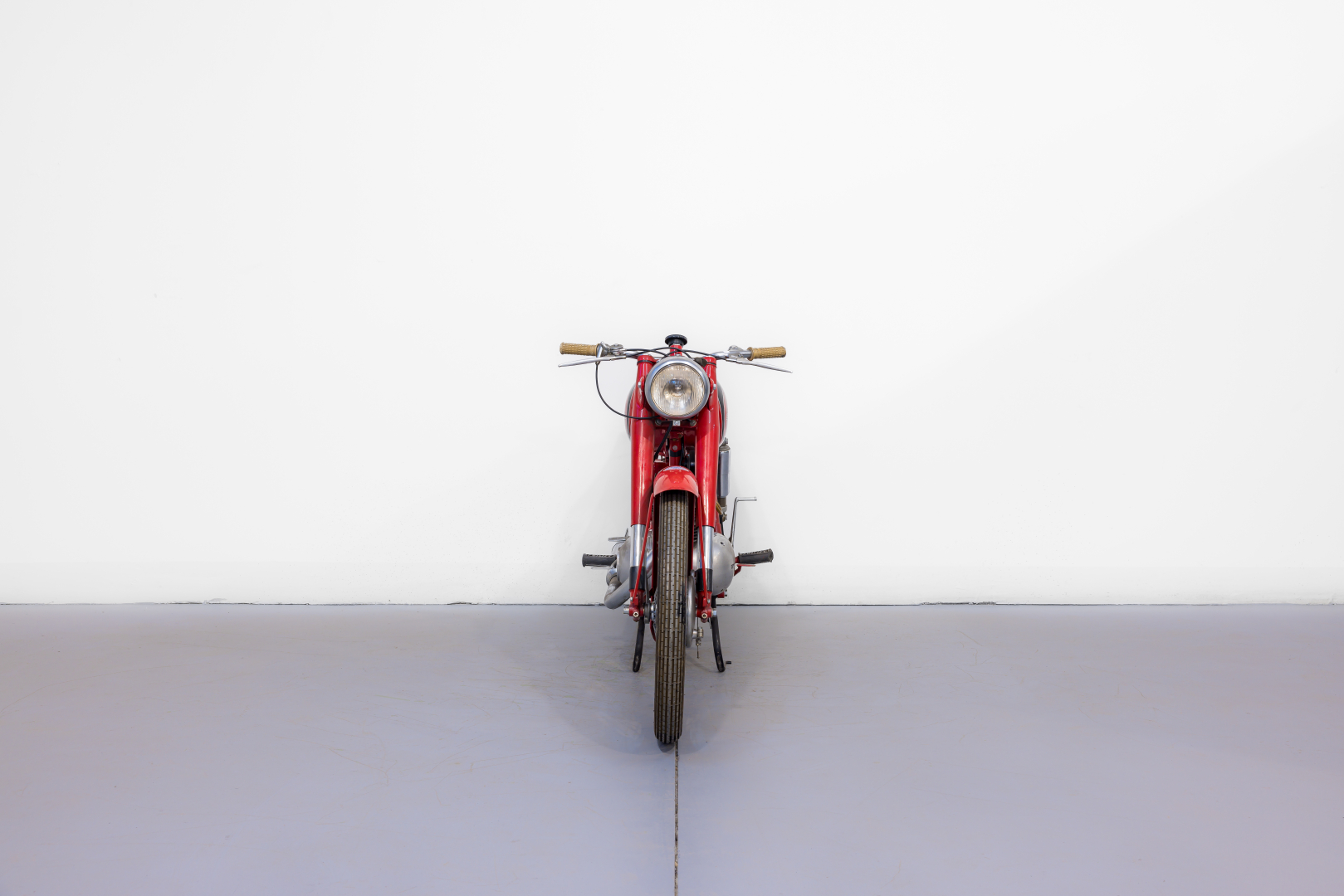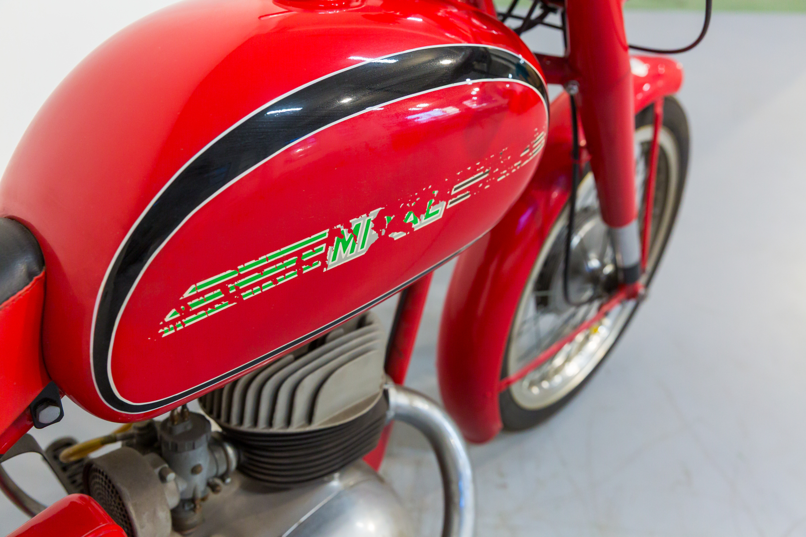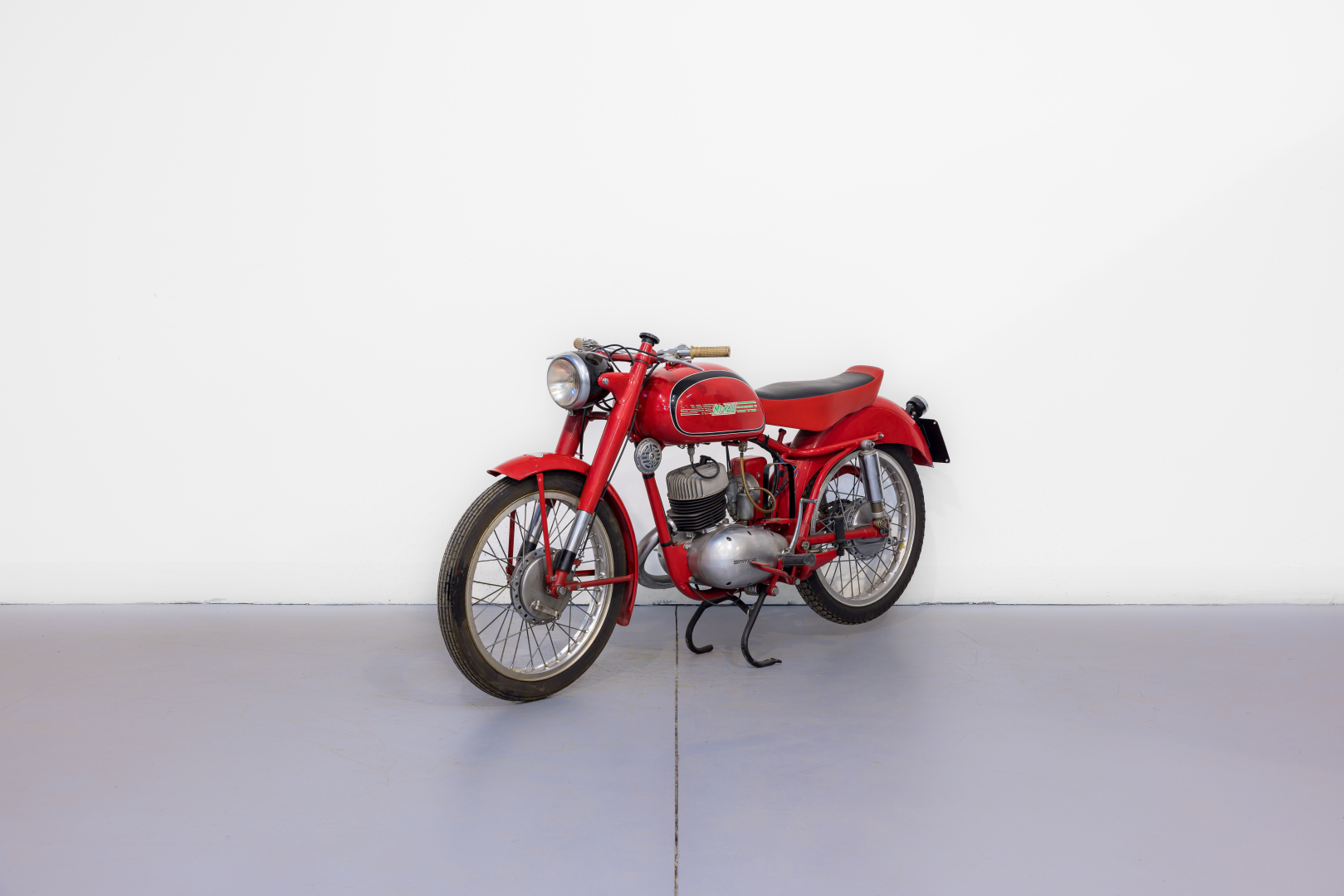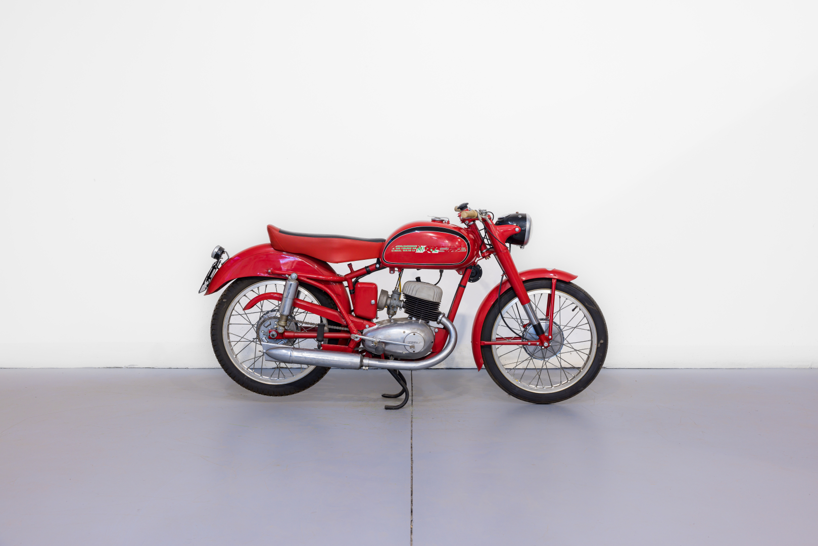 MI‑VAL was one of many companies that began producing motorcycles and scooters after the war to help motorize the country. The Brescia-based firm focused immediately on agile, essential motorcycles with two-stroke engines. Among these, the 175 stands out, powered by a lively engine rated at 9 hp with a four-speed gearbox, built on a single-cradle frame with a semi-hydraulic telescopic front fork and a rear swinging arm assisted by twin hydraulic shock absorbers. The 175 offered here, in the L version, is preserved and in good condition. For parts use.