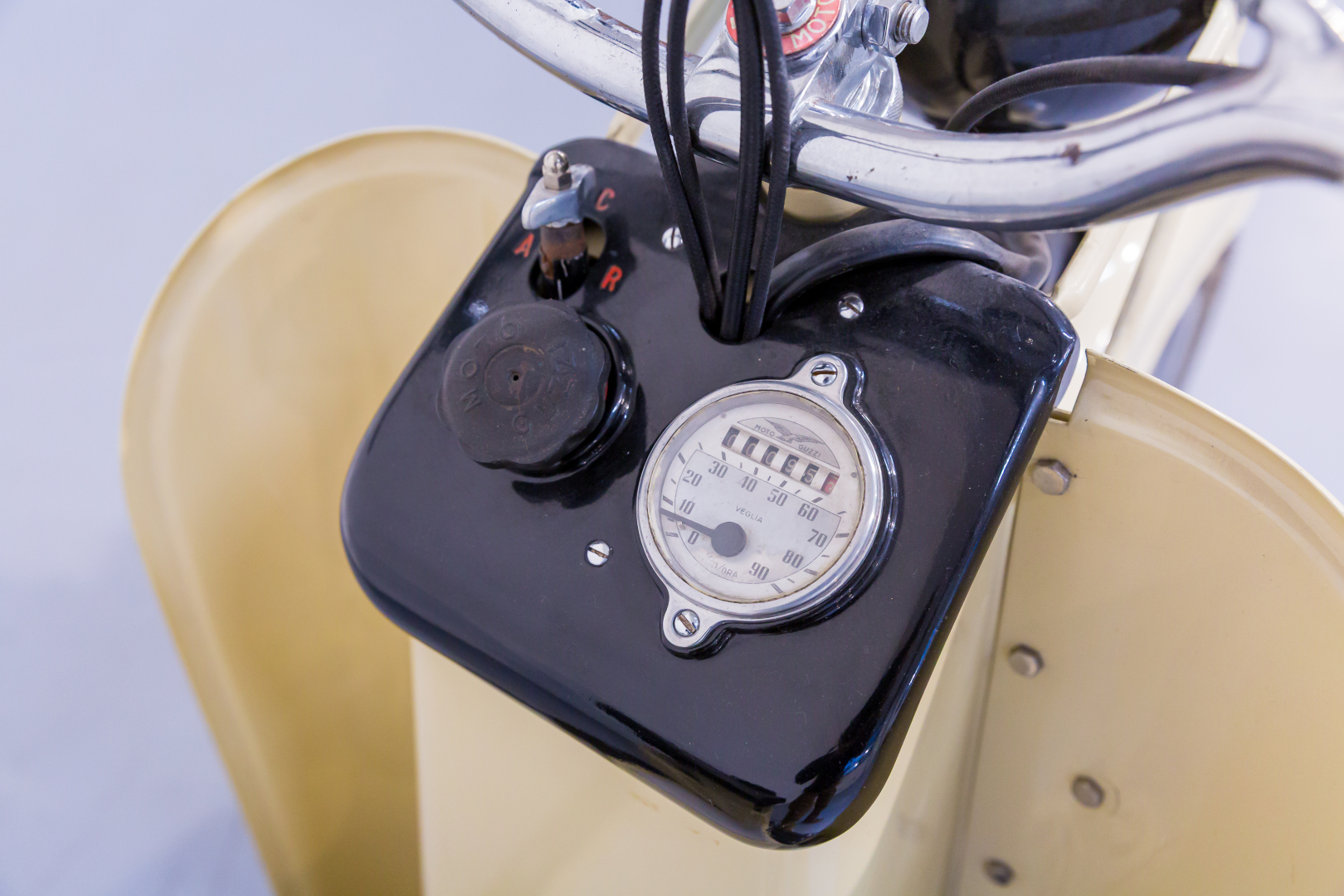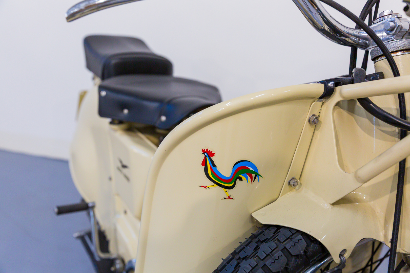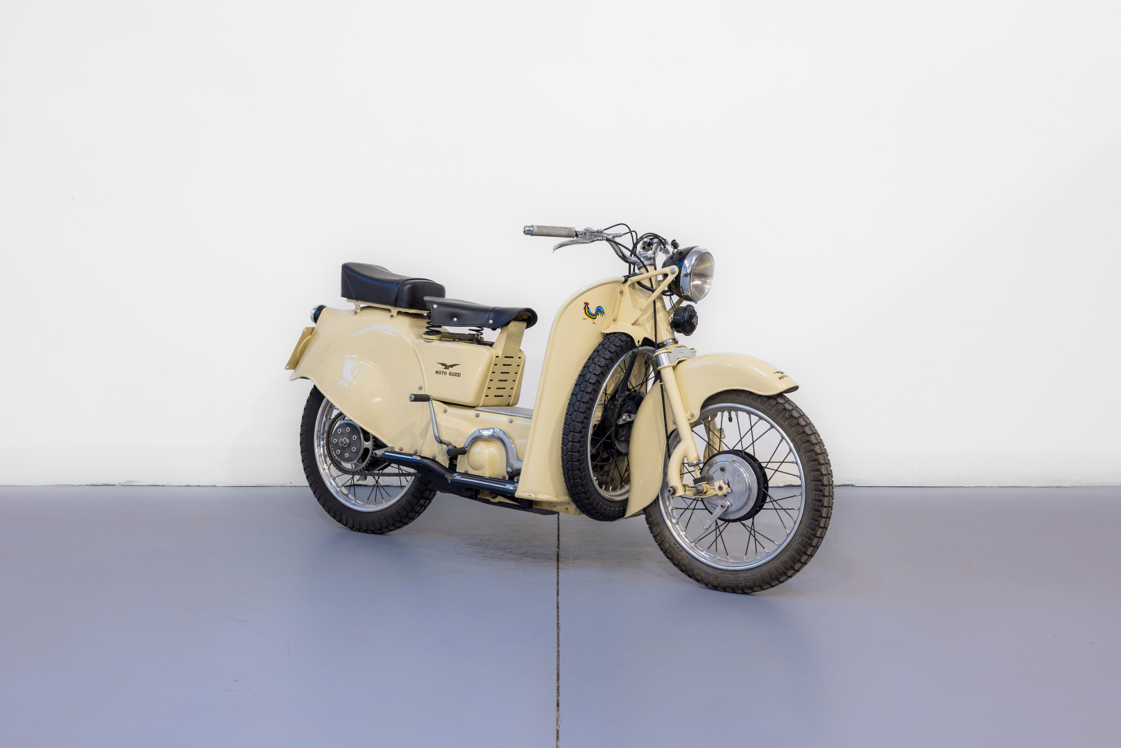 An original Moto Guzzi take on the scooter concept. Pleasant and very comfortable to ride, ideal for out‑of‑town trips. It combines the convenience of a scooter with the stability of large wheels and the added benefit of a spare wheel. Early first‑series model with a 160 cc engine, particularly sought after by collectors. A general check is recommended before use.