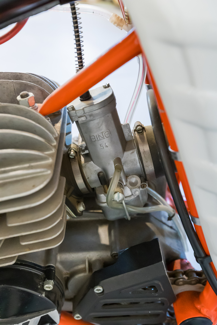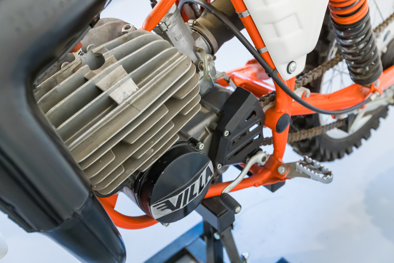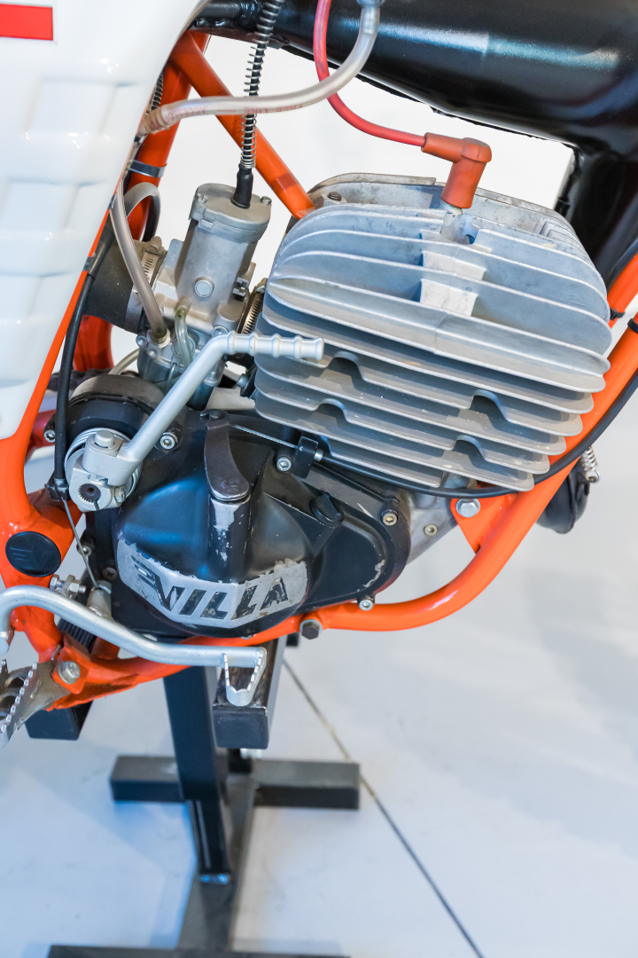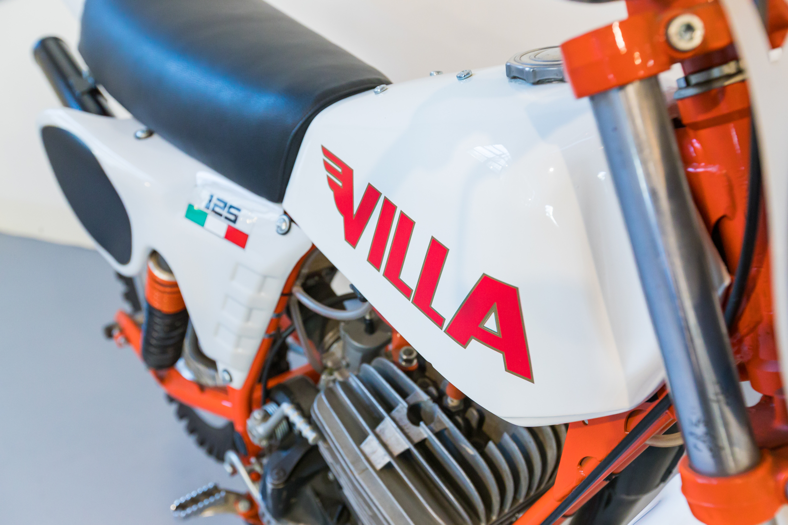 In the late 1970s, off-road racing—particularly motocross—became increasingly popular in Italy, leading to fierce competition across numerous tracks. The 125 class was especially crowded with riders, and Italian brands joined the race to capture the market. Founded by rider and engineer Francesco Villa, the company presented the 125 CR model, powered by a square 54x54 mm 123.6 cc two-stroke single-cylinder engine producing an impressive 26 hp at 10,500 rpm, with a six-speed gearbox, chrome-moly steel frame, air fork with 36 mm stanchions, and gas rear shocks by Corte & Cosso. Preserved, excellent condition, rare opportunity. A general inspection is recommended before use.