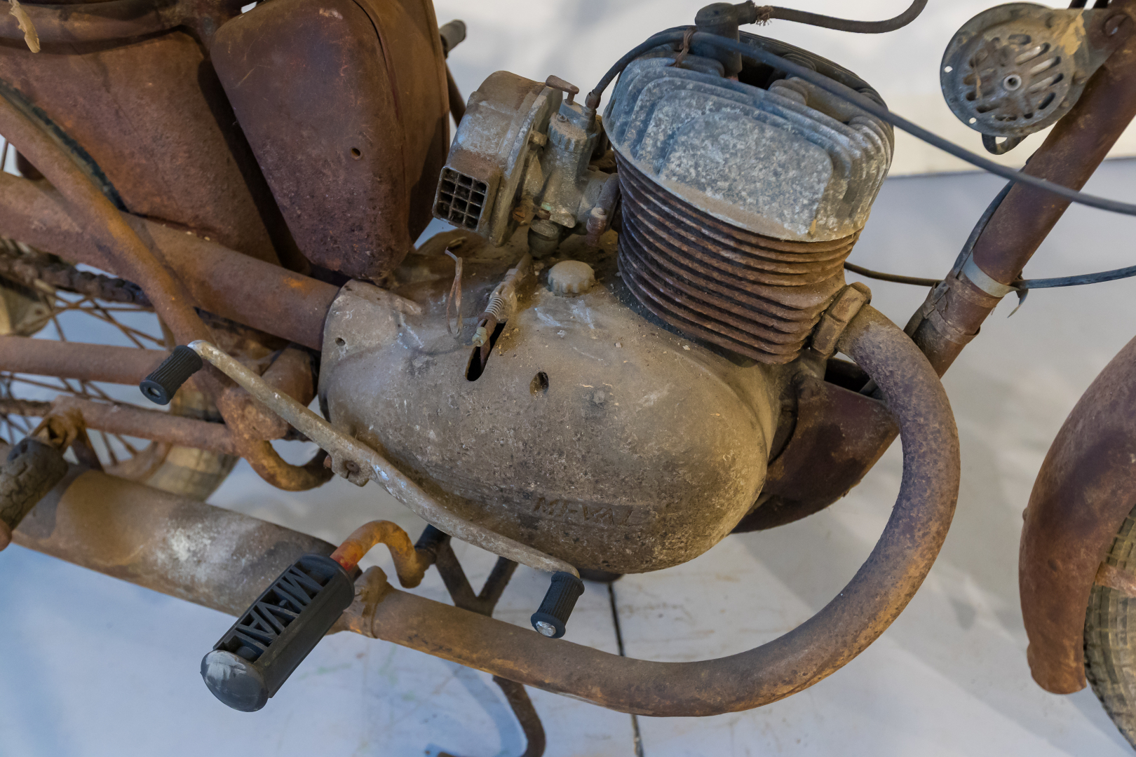 Mival, acronym for Minganti Val Trompia, was a Brescia-based company specializing in motorcycles powered by agile and lively two-stroke engines. The 125 T model featured a 125 cc single-cylinder engine mounted in a nimble chassis with a single-cradle steel-tube frame, 19” wheels, telescopic fork, and swingarm with twin shock absorbers. Suitable for parts.