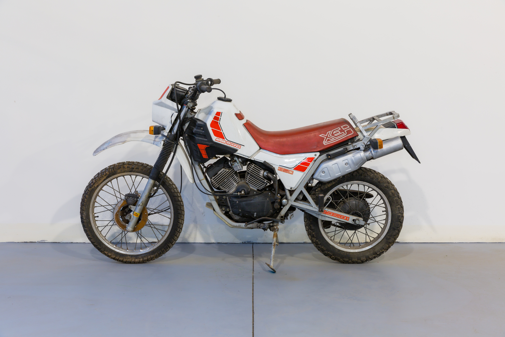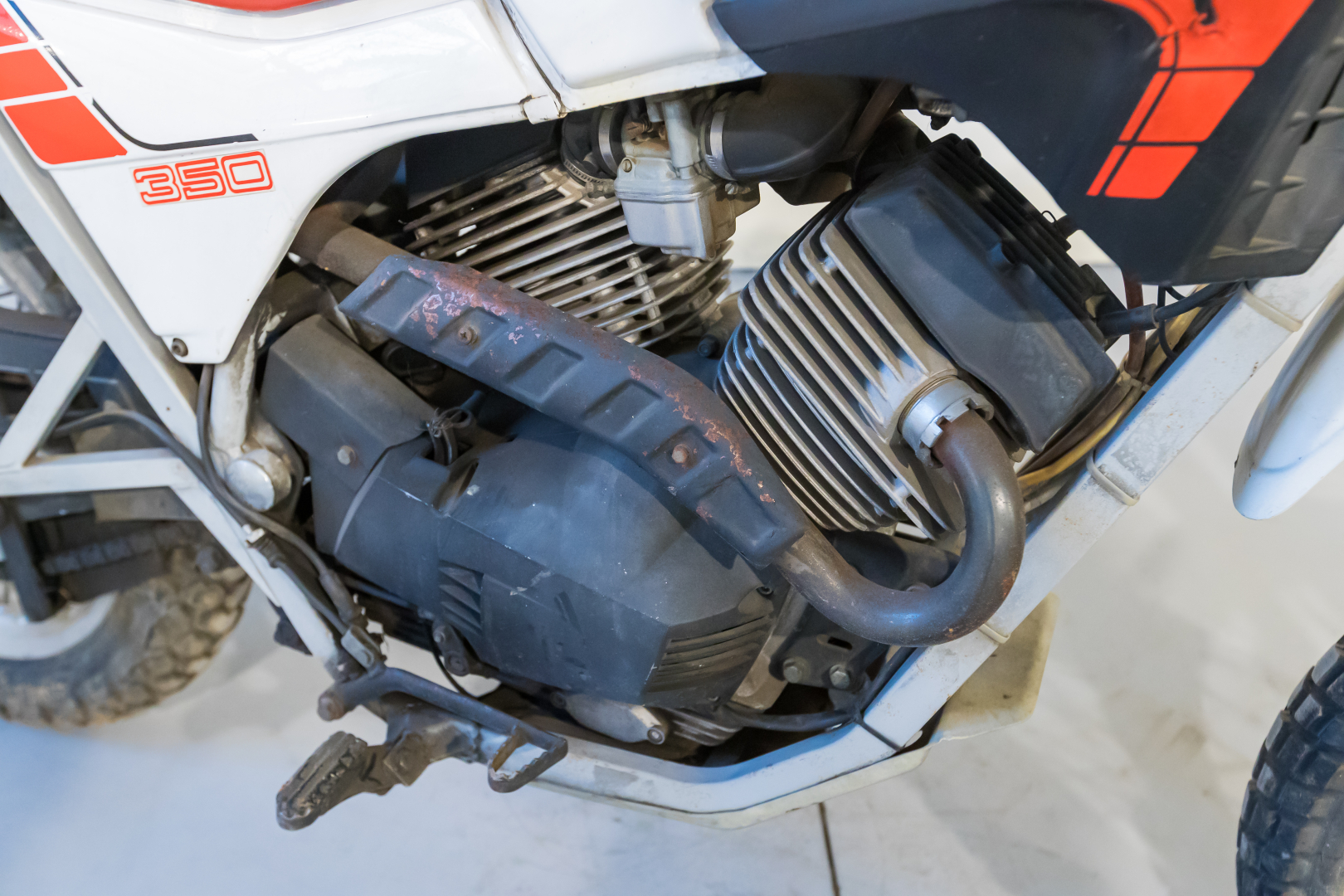 In the 1980s, Moto Morini also entered the off-road market with the Camel 500 and Kanguro 350, following the desert-rally-inspired trend. These bikes featured a closed double-cradle steel frame, telescopic fork, and a rear swingarm with a progressive-link monoshock. The engine, based on Franco Lambertini’s proven design, was the classic 72° longitudinal V-twin four-stroke with pushrod valve gear. Preserved in fair condition, suitable for parts or restoration.
