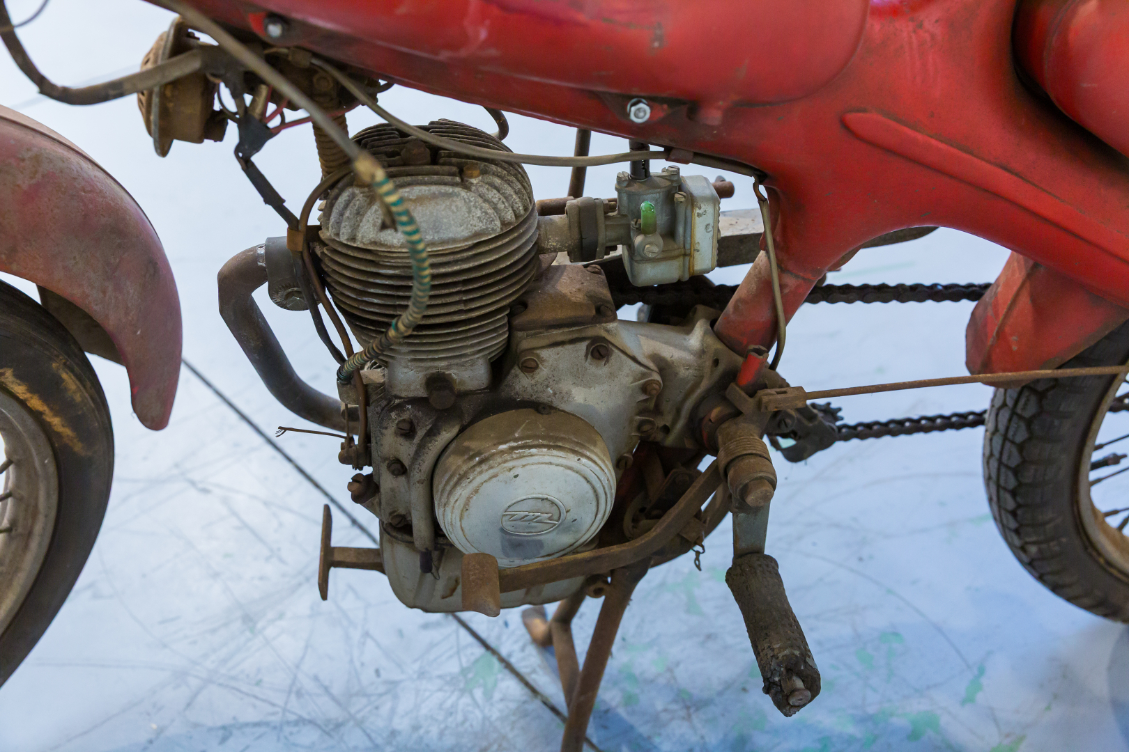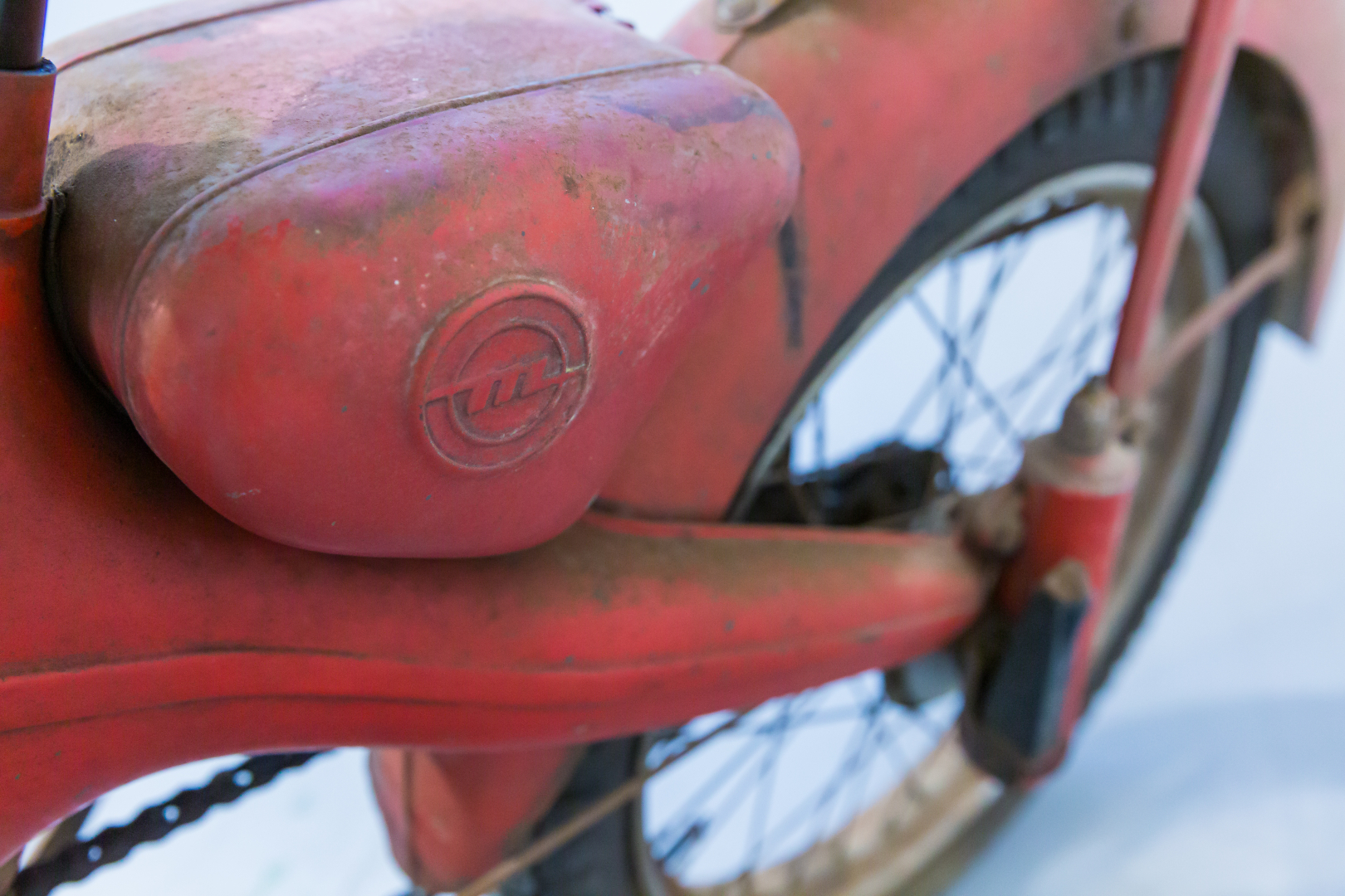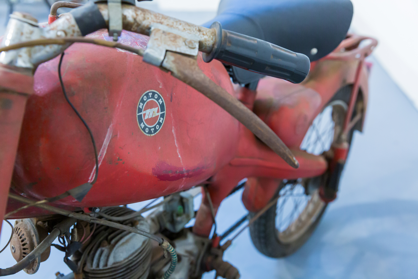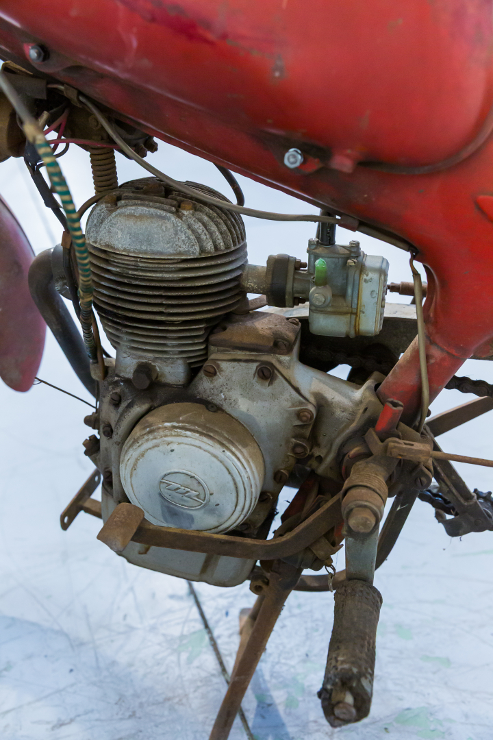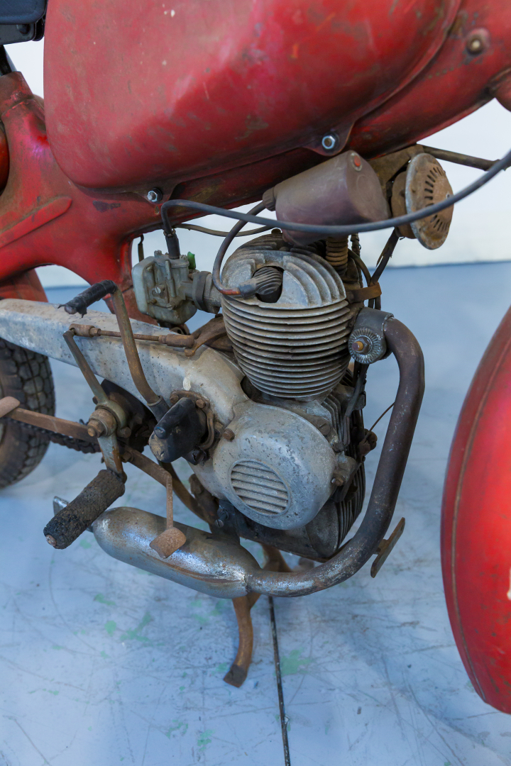 An enlarged version of the famous Model 48, equipped with the classic 51cc single-cylinder four-stroke engine and a pedal-operated gearbox. Preserved, in fair condition, suitable for restoration or use as spare parts.