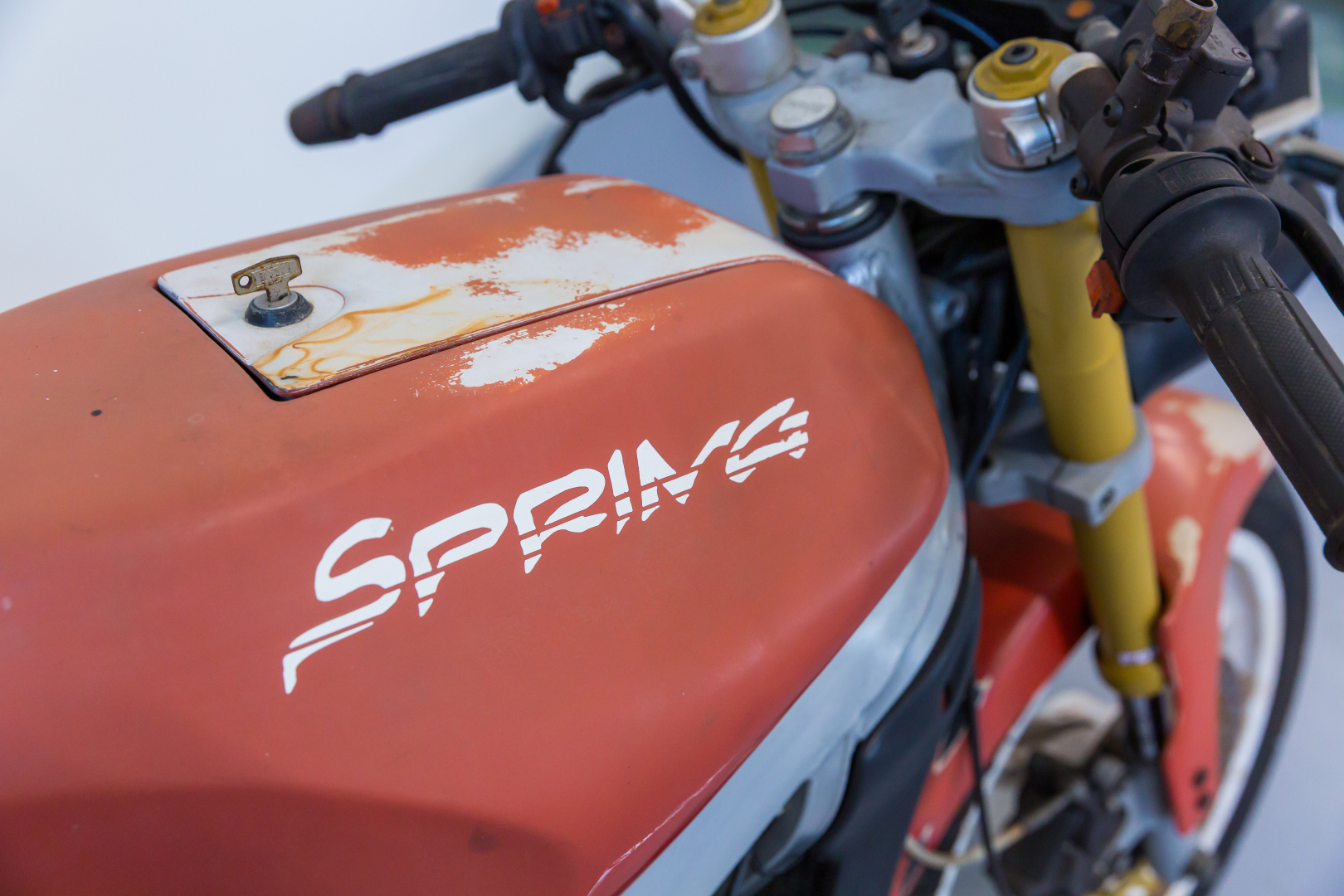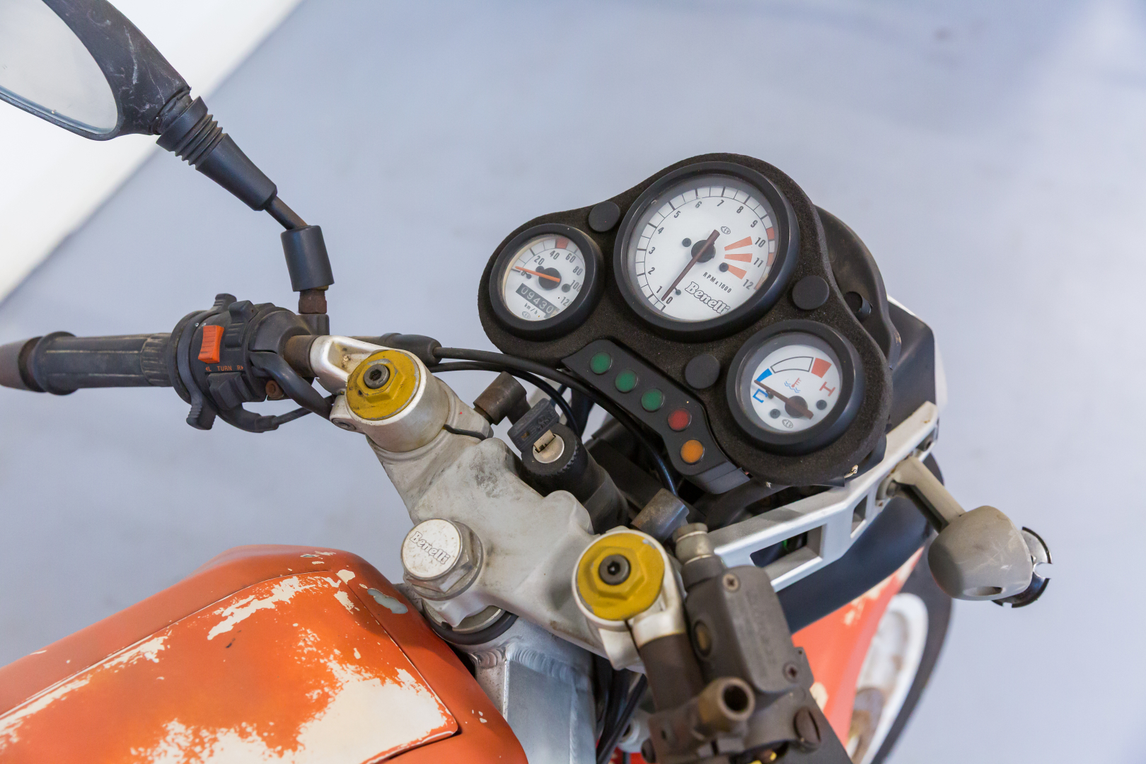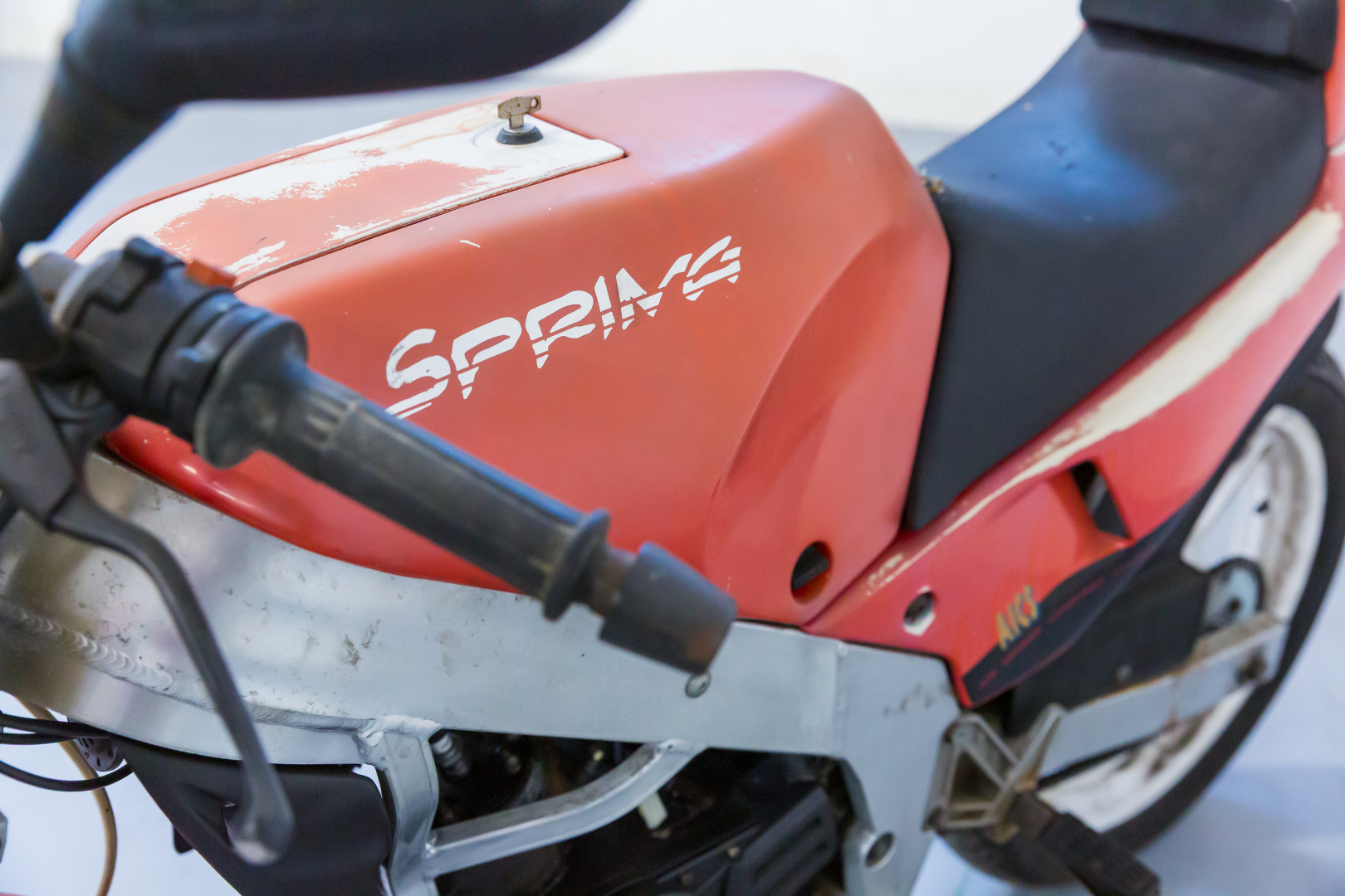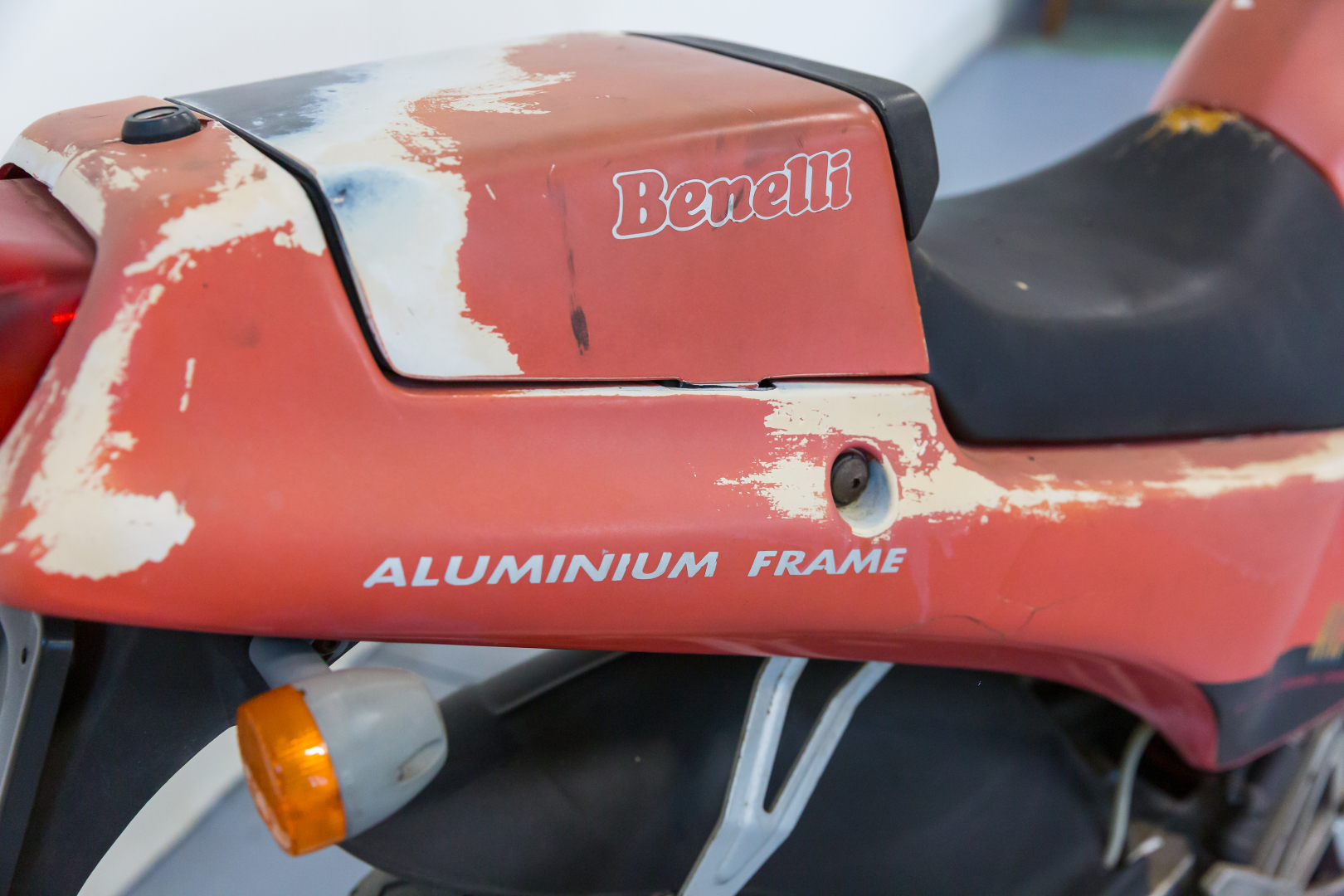 Bright and appealing moped presented by Benelli of Pesaro in the 1990s, equipped with a 49.7cc single-cylinder liquid-cooled engine, reed valve intake, aluminum perimeter frame, upside-down fork, and rear suspension with swingarm and mono-shock with progressive action. A general check-up is recommended before use.