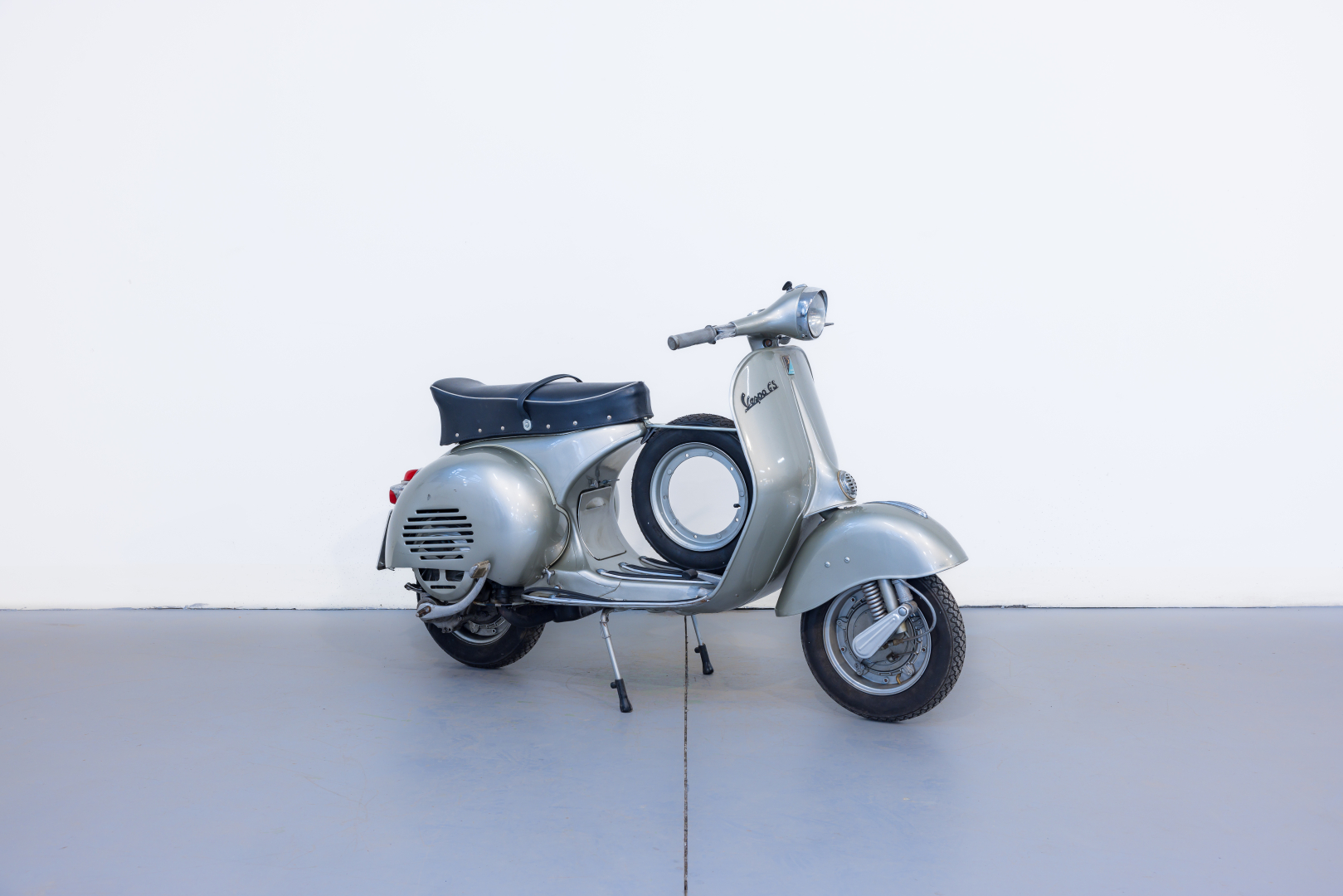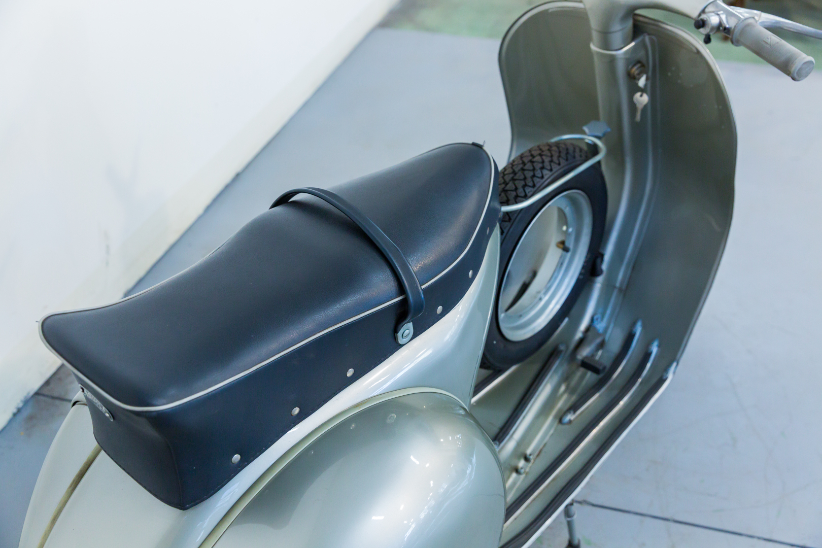 The Vespa model named VS5M was officially presented in 1961. The engine is similar to the previous GS 150, but the main new features concern the brake department, updated with ventilated drums, new brake and clutch levers, a ring-shaped storage hook in front of the seat, and a speedometer with a white background and 120 km/h full scale. Excellent condition. FMI registered. A general check is recommended before use.