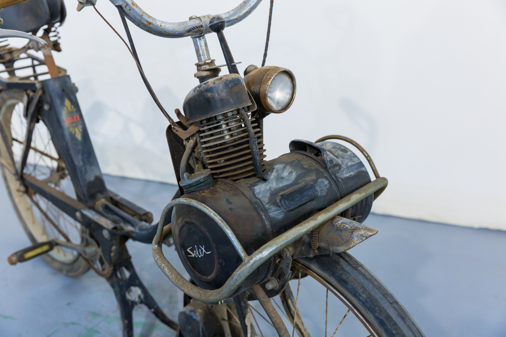 The Velosolex was among the most representative products of the drive generated by people's need for mobility in the immediate post-war period, produced by the French company Solex in about six million units. An economical means of transport consisting of an auxiliary 49 cc single-cylinder two-stroke engine credited with 0.795 HP, applied to bicycles in the front position, whose motion was transferred to the wheel through a roller. A symbol of mass mobility in the first post-war period. Preserved, fair condition. A general check is recommended before use.
