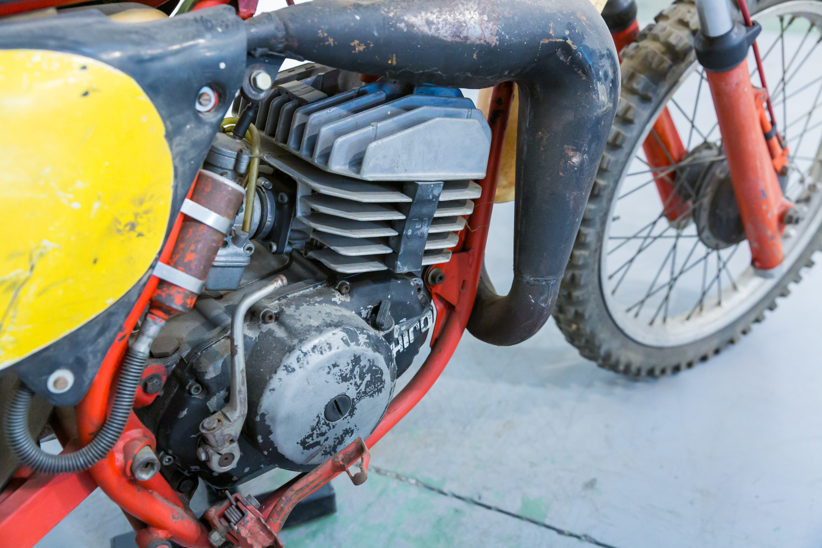 Racing motorcycle produced by the Parma-based TGM, in the 125cc version, equipped with a Hiro single-cylinder 2-stroke engine aided by a generous chassis with tubular double-cradle steel frame and top-level suspension. Preserved, complete, ideal for an ambitious restoration project or for spare parts.