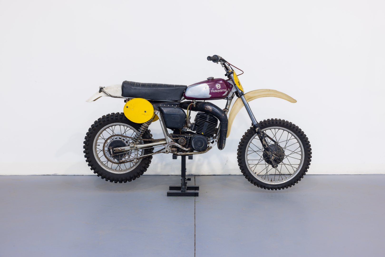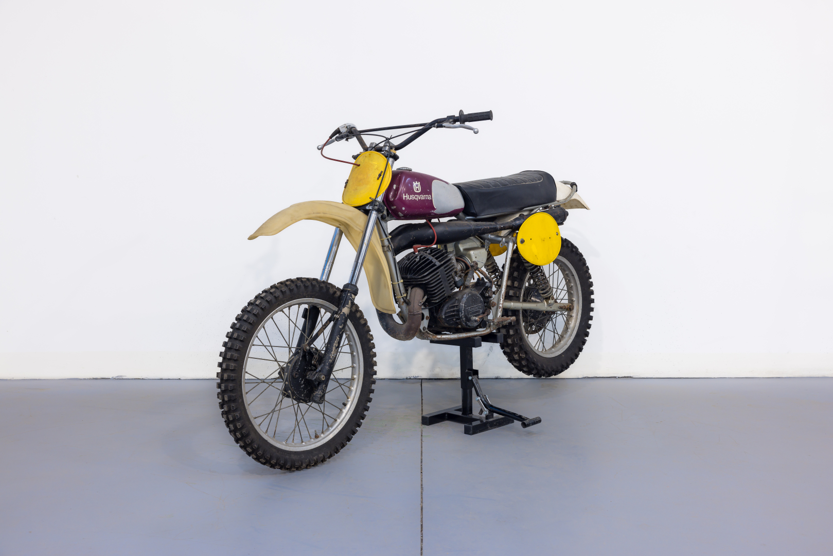 In the 1970s, the constant search for performance with limited weight and dimensions led all manufacturers to experiment with various solutions, including the gradual increase in engine capacity. Husqvarna, for its part, did not hesitate to further increase the displacement of the already very powerful 360cc engine to 390cc, introducing a truly competitive machine: powerful, light, and suitable for competing in the Open classes of desert races. Split single-cradle frame in high-strength steel tubes, air front fork, rear swinging arm with two tele-hydraulic shock absorbers with dual-rate springs. Preserved, fair condition. A general check is recommended before use.