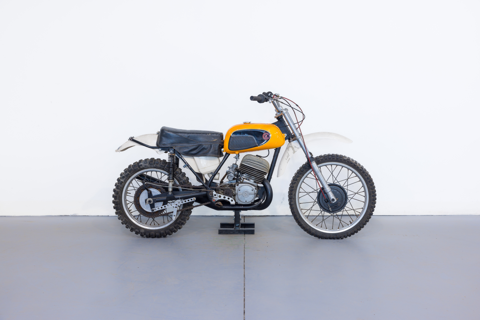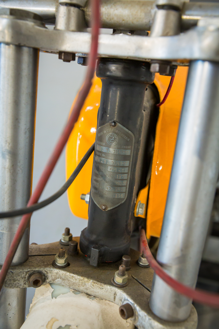Iconic competition motocross motorcycle produced by the famous Czechoslovak brand CZ in the 1970s, equipped with a 380cc single-cylinder 2-stroke engine with radial finned cylinder head, credited with a power of 42.68 HP, the top for the era. Semi-complete with several parts already restored, excellent for completing the restoration project.