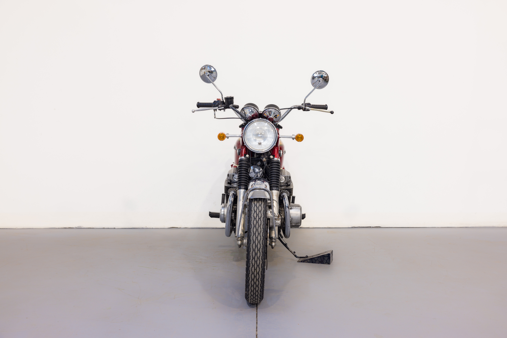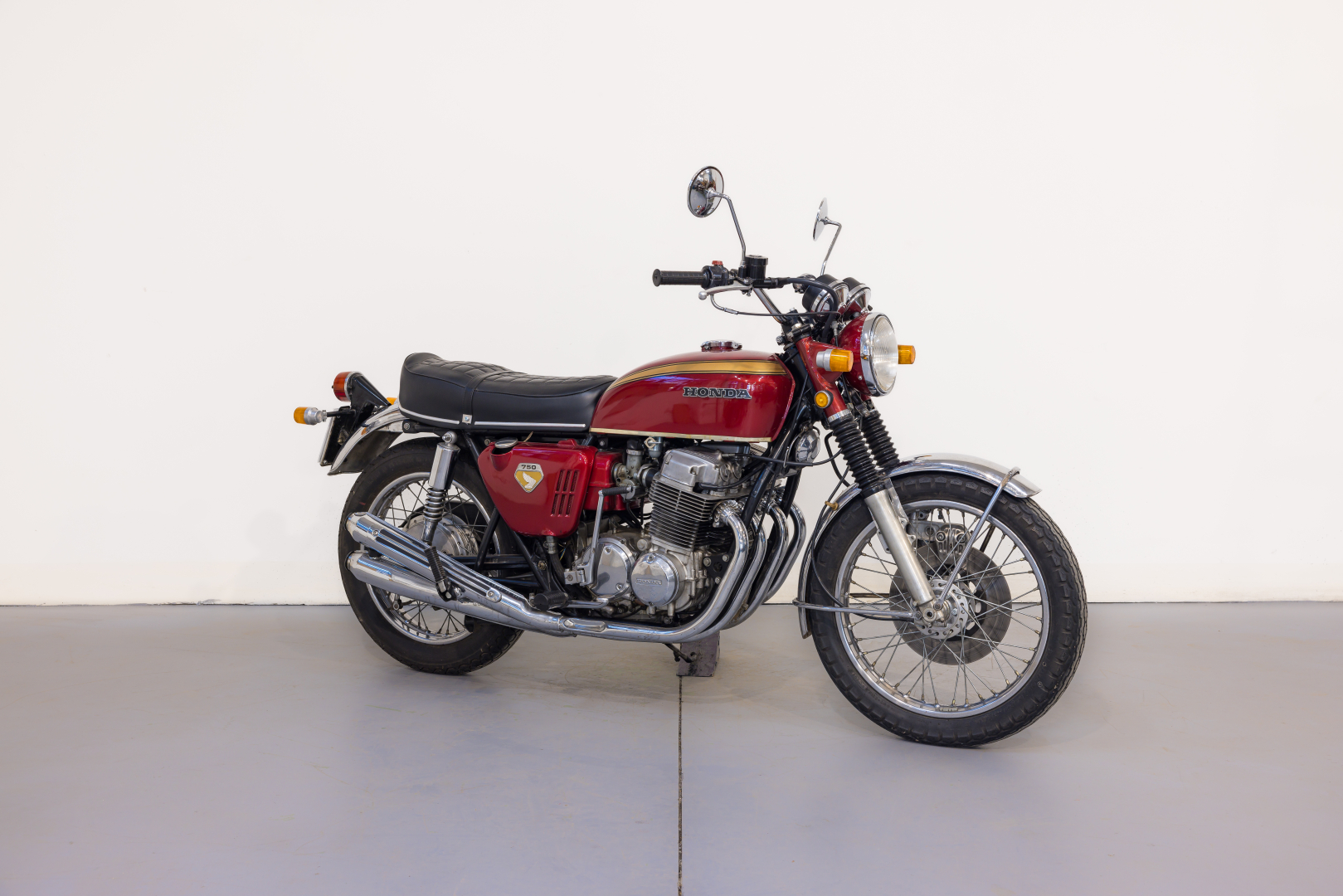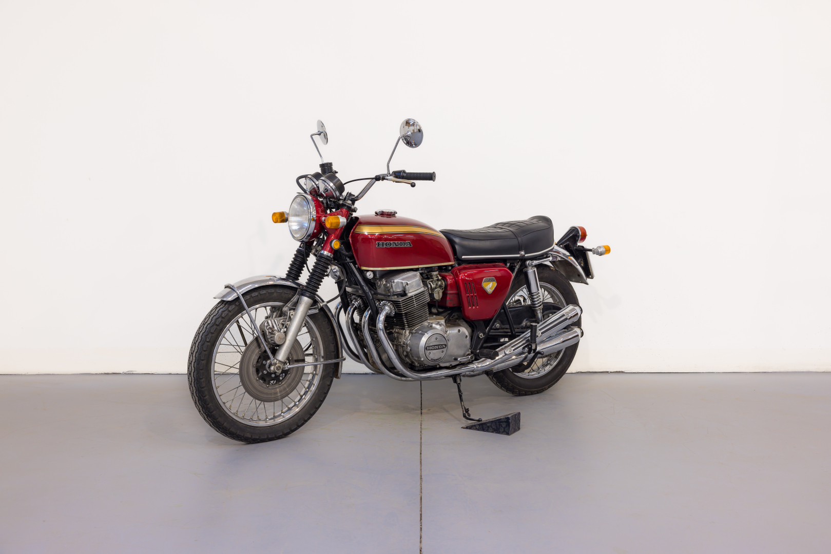 At the 1968 Tokyo Moto Show, Honda presented the brand-new CB750 Four, the amazing bike that revolutionized the two-wheeled sector, carving a path that all other motorcycle manufacturers followed in the future. 4-stroke, four-cylinder front-facing engine with single overhead camshaft distribution, the first four-cylinder motorcycle with an electric starter to be mass-produced. The equipment was completed by a generous chassis with a double cradle frame in steel tubes, front tele-hydraulic fork, rear swinging arm with a pair of tele-hydraulic shock absorbers, hydraulically operated 296mm single front disc brake, 180mm diameter rear drum, 19” front wheel, 18” rear wheel. The specimen offered belongs to the first series, named K0, whose die-casting of the engine crankcases—finished imperfectly because Honda had to meet an unexpected and extremely high demand for this model—makes them similar to sand-cast crankcases. Preserved, in perfect condition, a milestone of motorcycling. A general check is recommended before use.