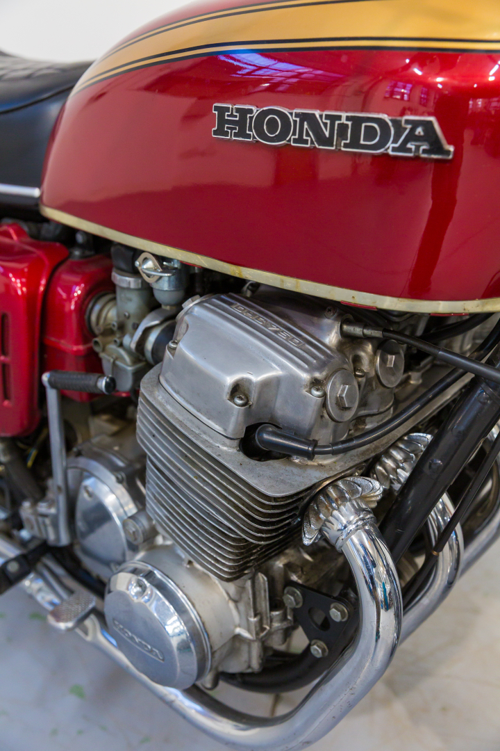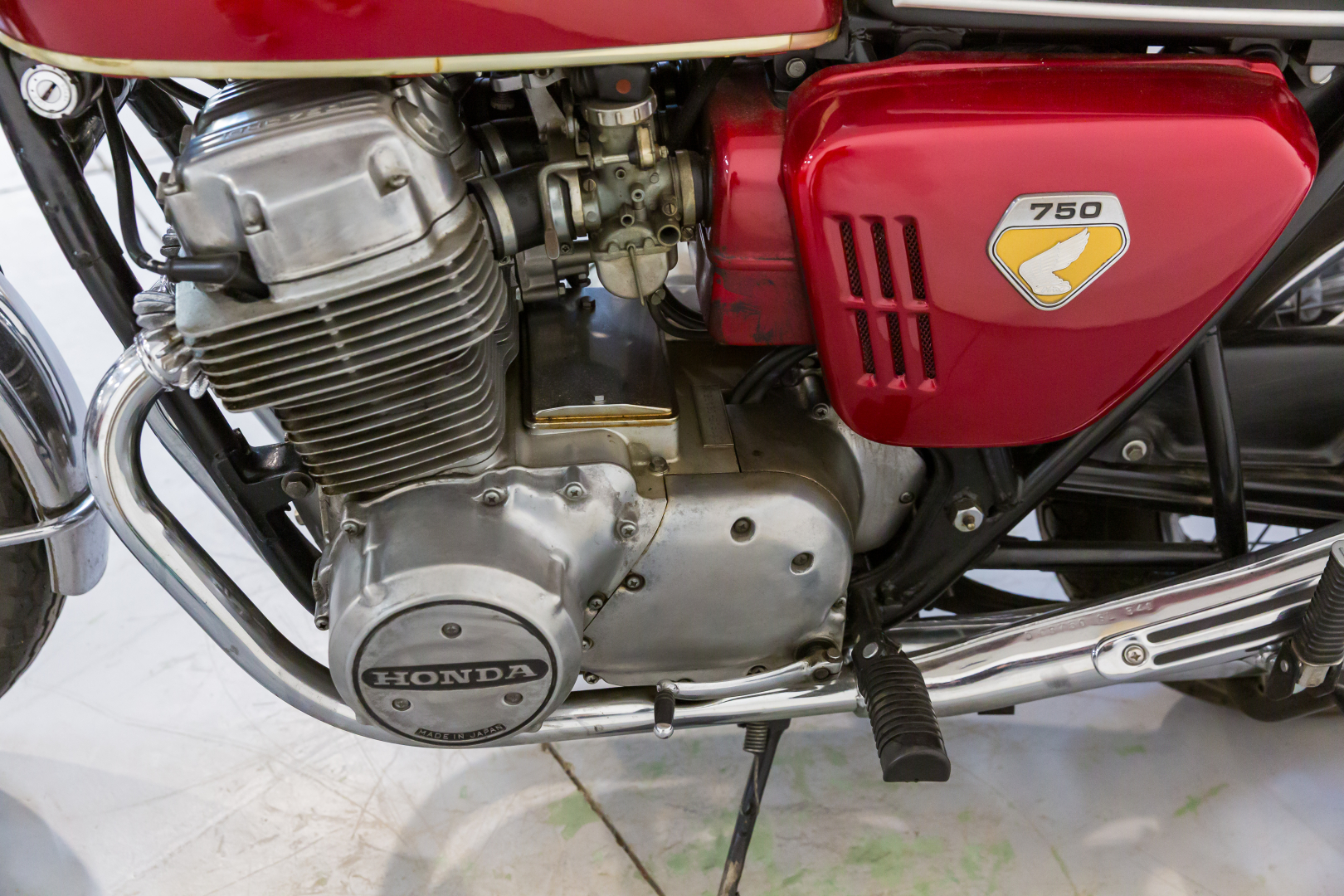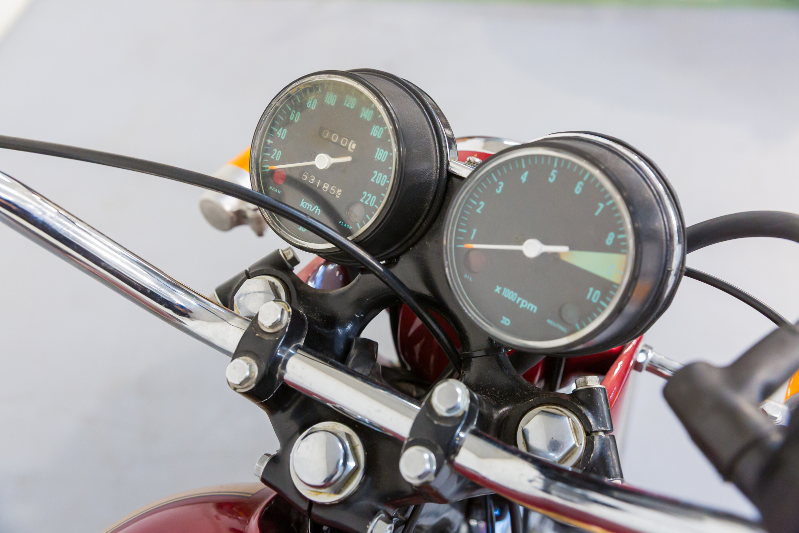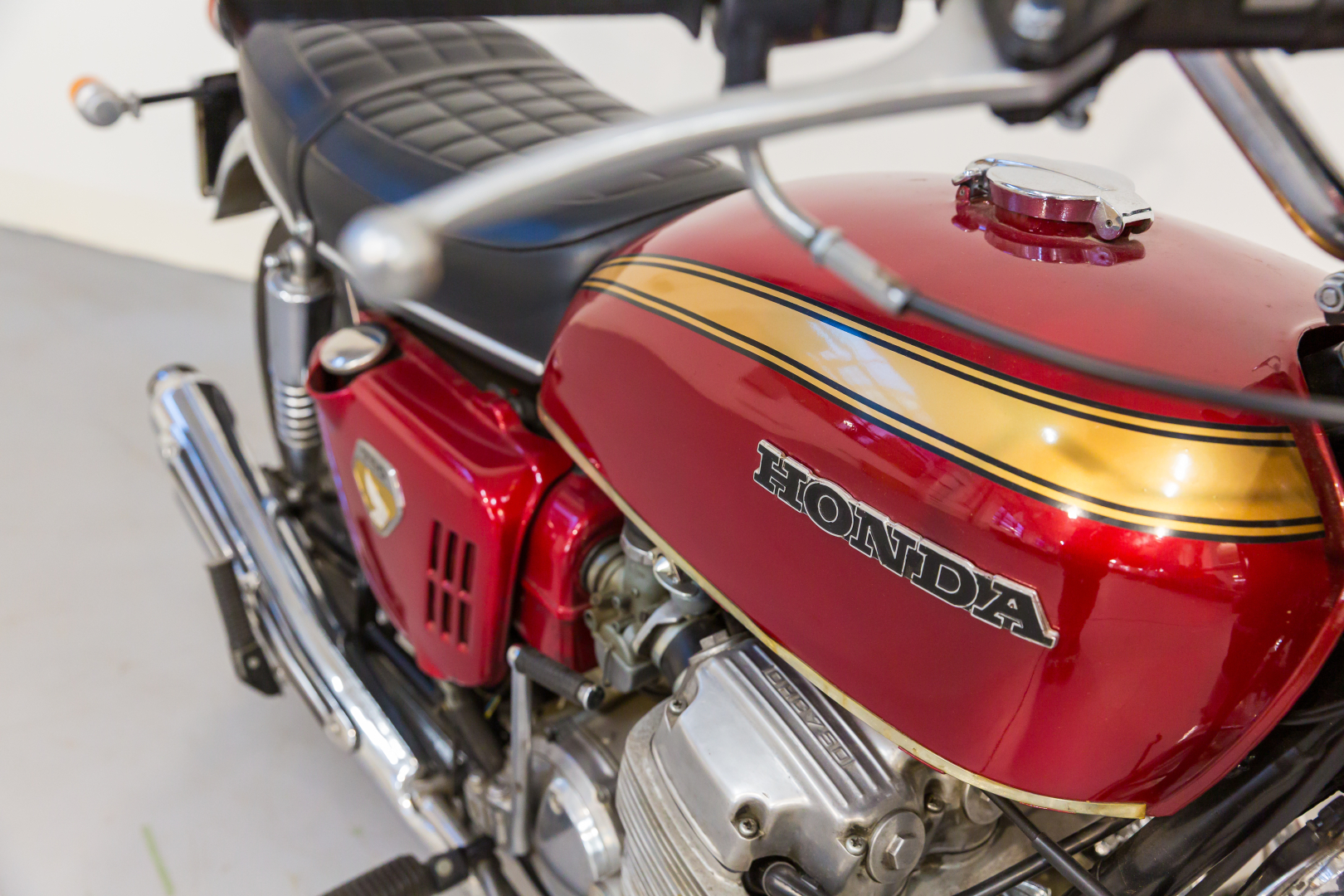 At the 1968 Tokyo Moto Show, Honda presented the brand-new CB750 Four, the amazing bike that revolutionized the two-wheeled sector, carving a path that all other motorcycle manufacturers followed in the future. 4-stroke, four-cylinder front-facing engine with single overhead camshaft distribution, the first four-cylinder motorcycle with an electric starter to be mass-produced. The equipment was completed by a generous chassis with a double cradle frame in steel tubes, front tele-hydraulic fork, rear swinging arm with a pair of tele-hydraulic shock absorbers, hydraulically operated 296mm single front disc brake, 180mm diameter rear drum, 19” front wheel, 18” rear wheel. The specimen offered belongs to the first series, named K0, whose die-casting of the engine crankcases—finished imperfectly because Honda had to meet an unexpected and extremely high demand for this model—makes them similar to sand-cast crankcases. Preserved, in perfect condition, a milestone of motorcycling. A general check is recommended before use.