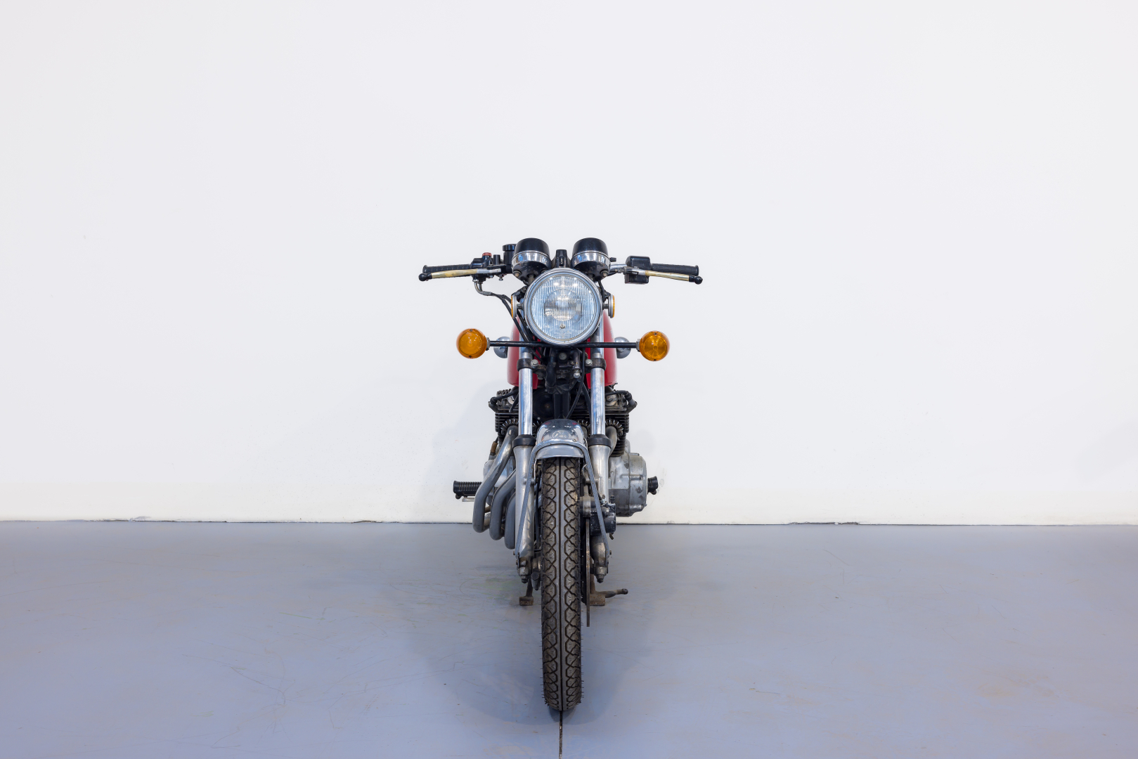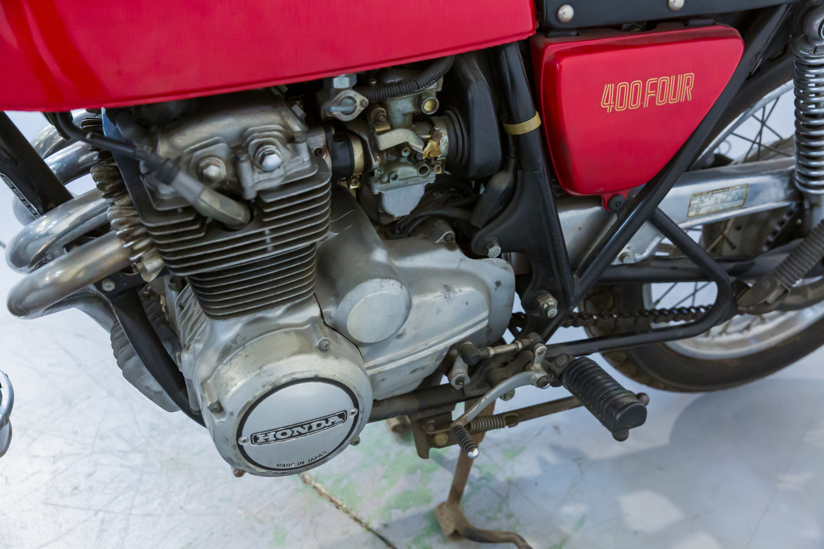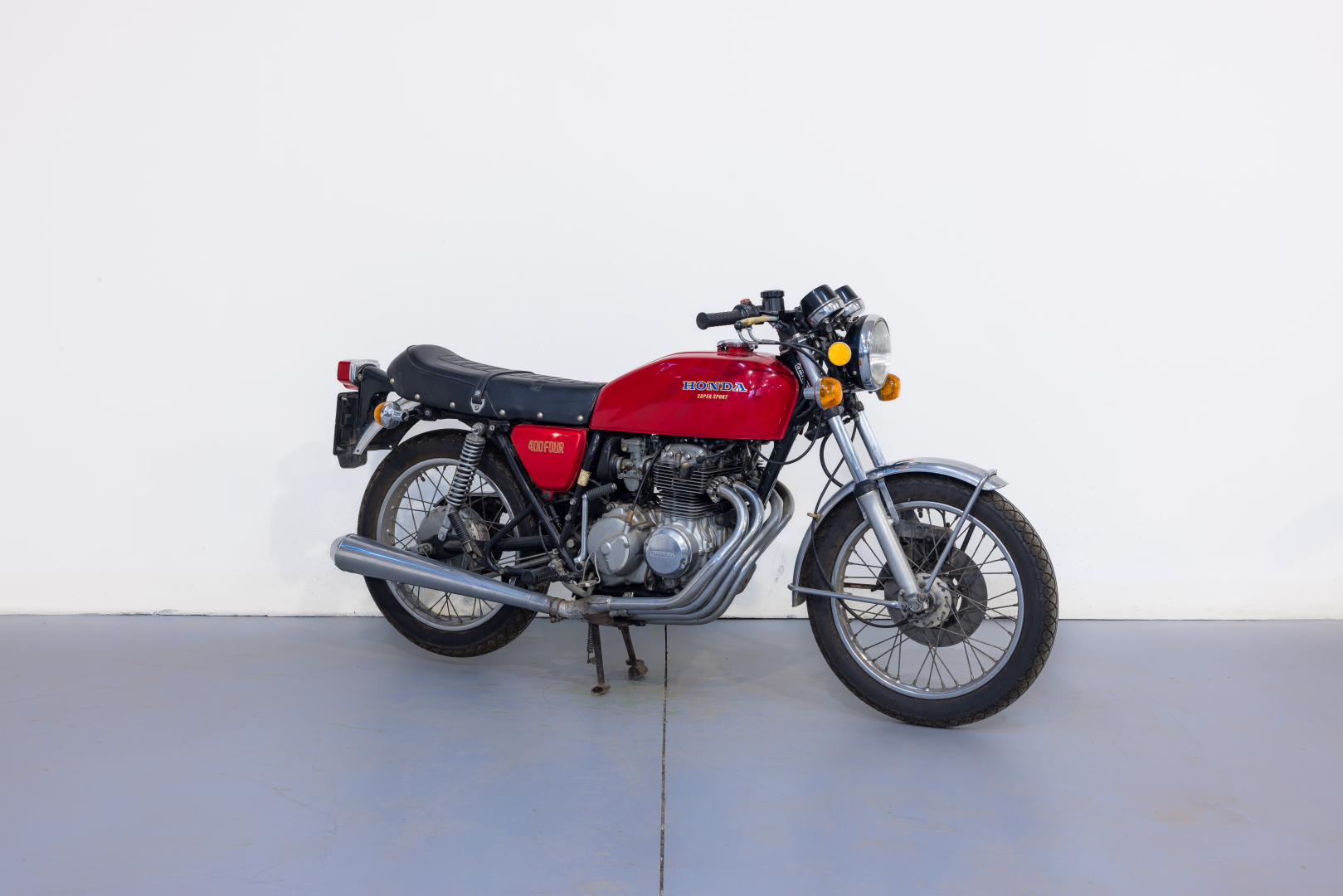 In 1975, the Japanese motorcycle manufacturer Honda presented the model named the CB400F, equipped with a refined 4-cylinder 4-stroke engine with single overhead camshaft distribution and 408cc displacement, credited with a power of 37 HP at 8500 rpm, and an original 4-in-1 exhaust that enhanced its sound. Double cradle frame in steel, front suspension with tele-hydraulic fork with 33mm stanchions, rear swinging arm with a pair of hydraulic shock absorbers, 260 mm single-disc front brake with hydraulic control, and 160 mm drum with mechanical control at the rear. Preserved, in excellent condition. ASI registered. A general check is recommended before use.