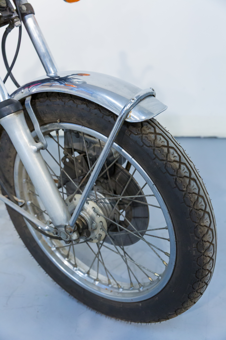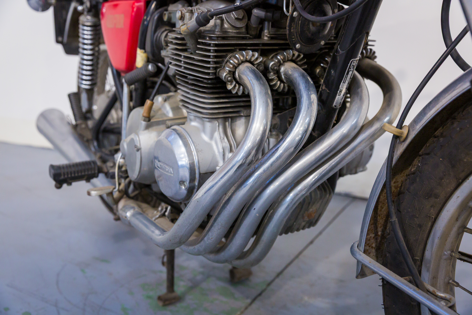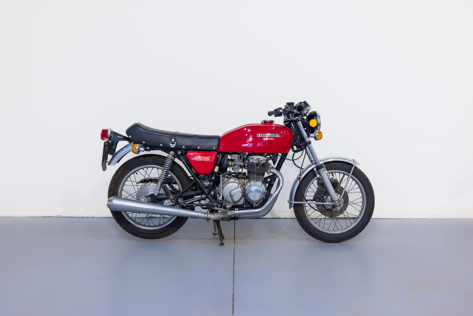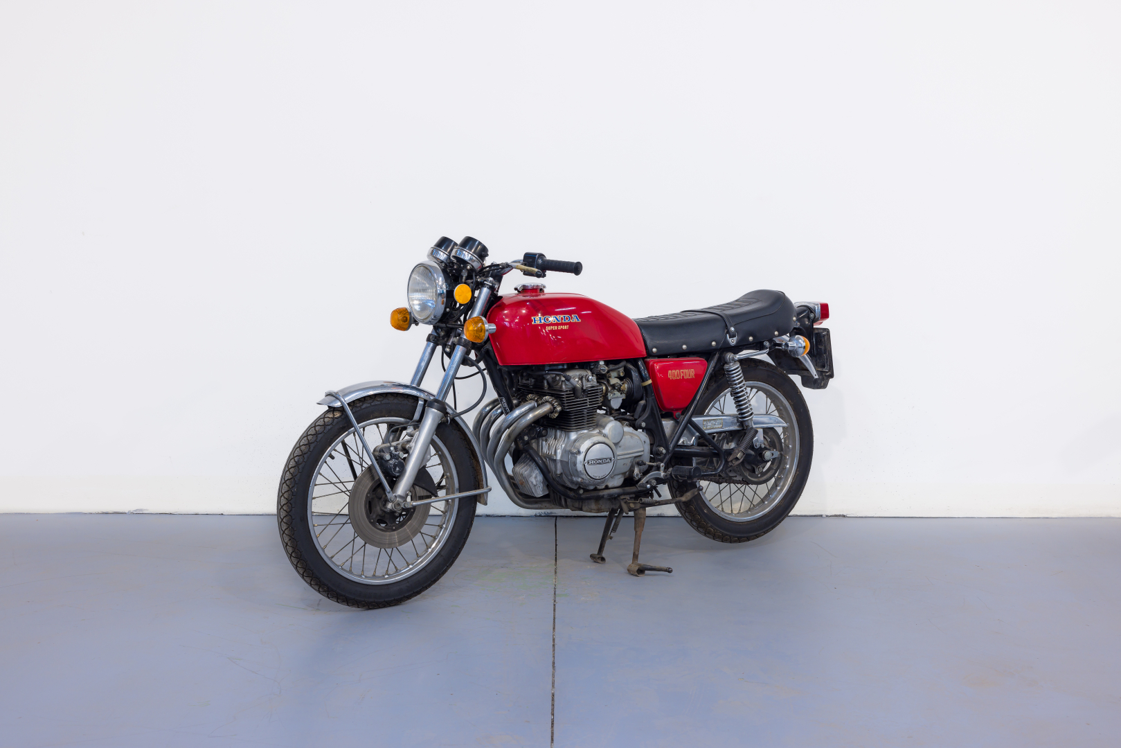 In 1975, the Japanese motorcycle manufacturer Honda presented the model named the CB400F, equipped with a refined 4-cylinder 4-stroke engine with single overhead camshaft distribution and 408cc displacement, credited with a power of 37 HP at 8500 rpm, and an original 4-in-1 exhaust that enhanced its sound. Double cradle frame in steel, front suspension with tele-hydraulic fork with 33mm stanchions, rear swinging arm with a pair of hydraulic shock absorbers, 260 mm single-disc front brake with hydraulic control, and 160 mm drum with mechanical control at the rear. Preserved, in excellent condition. ASI registered. A general check is recommended before use.