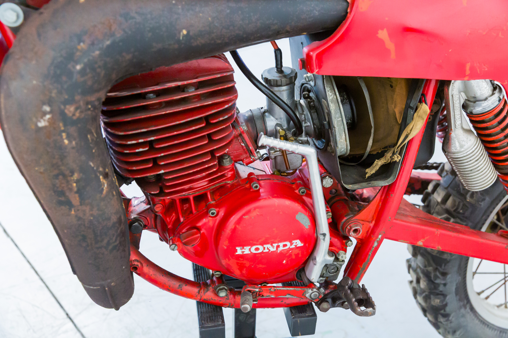 In 1980, Honda presented its motocross model named the CR 250R, equipped with a renewed tubular double cradle frame in steel, intended to be used for a long time on off-road competition bikes. It featured a powerful single-cylinder 2-stroke engine with reed intake and was very light due to the extensive use of light alloys and plastic material for the superstructures and the tank.