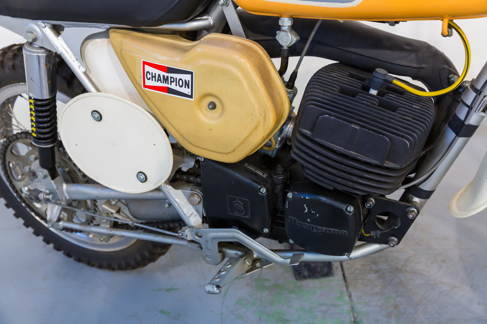 Negli anni’70 moltissime aziende motociclistiche proposero svariati modelli da fuoristrada, nelle più svariate cilindrate per assecondare la forte richiesta dell’utenza. La svedese Husqvarna, da sempre attenta alle esigenze del mercato lanciò la serie delle 125 da cross denominate SC e CR equipaggiate da brillanti motori monocilindrici a 2 tempi, telaio monoculla sdoppiata in acciaio e sospensioni con il top della componentistica disponibile all’epoca. Completa in ottime condizioni, ideale per manifestazioni fuoristradistiche d’epoca. Si consiglia un controllo generale prima dell’utilizzo.