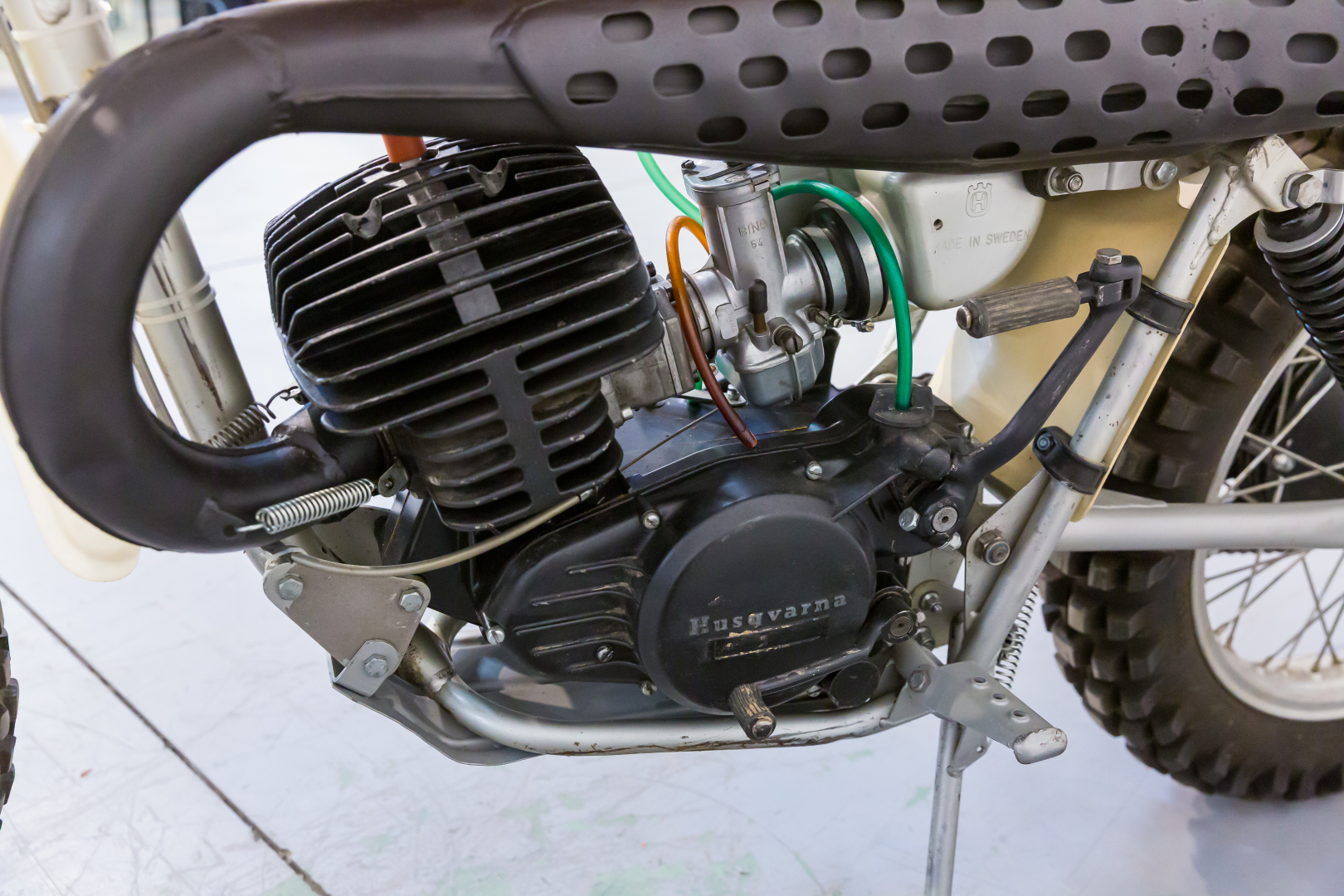 Always synonymous with power and great reliability, motorcycles produced by Husqvarna rank among the most coveted bikes by off-road enthusiasts. In 1976, the motocross model named WR was presented with a single-cylinder 2-stroke engine with reed admission, 6-speed gearbox, magnesium side casings, split single-cradle frame in steel tubes, front tele-hydraulic fork, rear swinging arm, and a pair of hydraulic shock absorbers, 21” front wheel, 18” rear wheel. Preserved, in excellent condition. A general check is recommended before use.