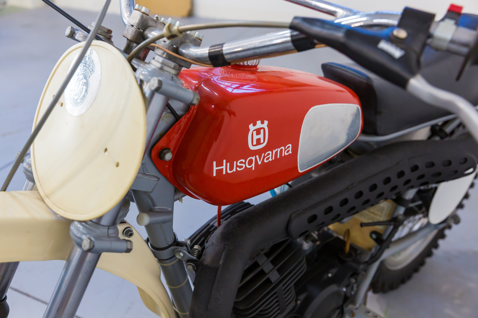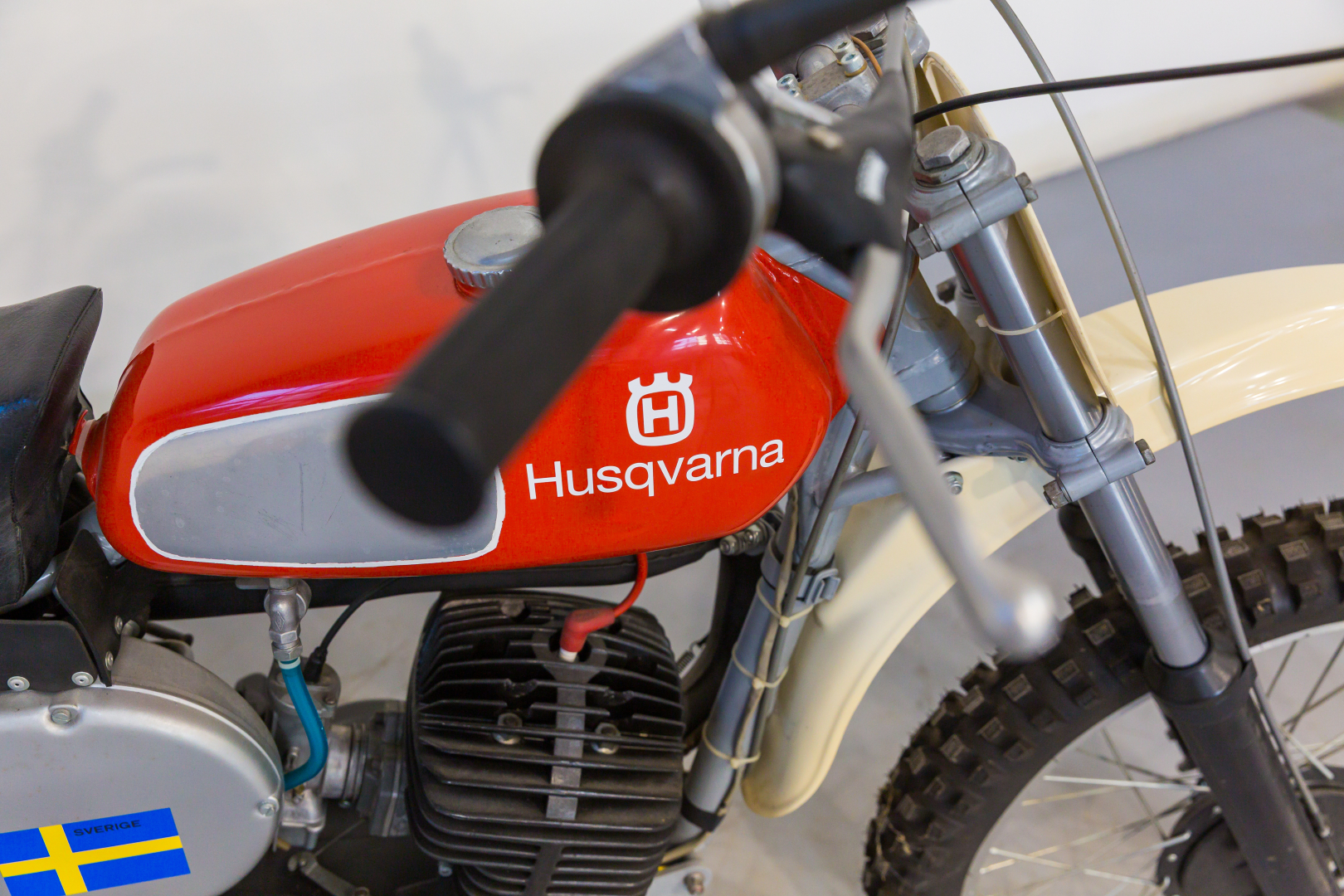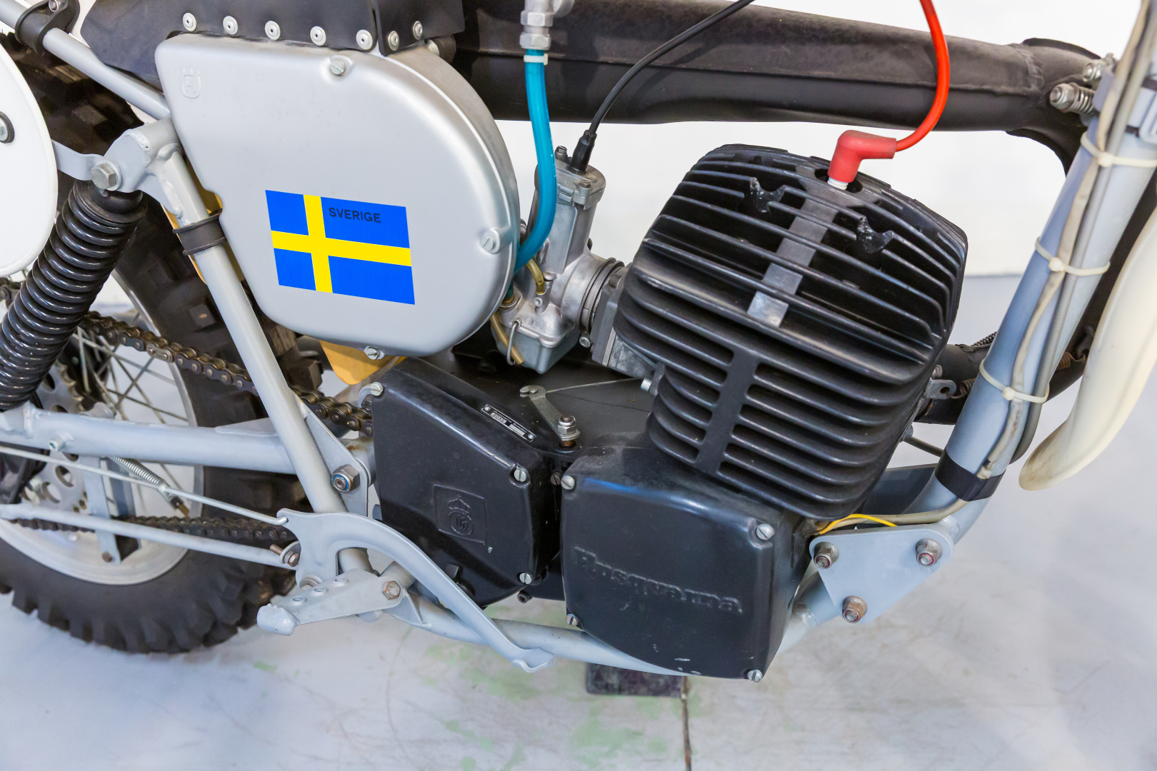 In 1975, the Husqvarna CR 250 named the Mikkola Replica was presented to motocross enthusiasts to celebrate the world title of the strong Finnish rider on their bike. Featuring the classic and proven 250cc single-cylinder 2-stroke engine, reed admission, 6-speed gearbox, and extensive use of magnesium in the side casings for weight reduction; the frame is the classic steel split single-cradle, as is the suspension with front tele-hydraulic fork and rear swinging arm with a pair of tele-hydraulic shock absorbers. The offered CR is a 1976 example in excellent condition, complete, ideal for vintage off-road reenactments and competitions. A general check is recommended before use.