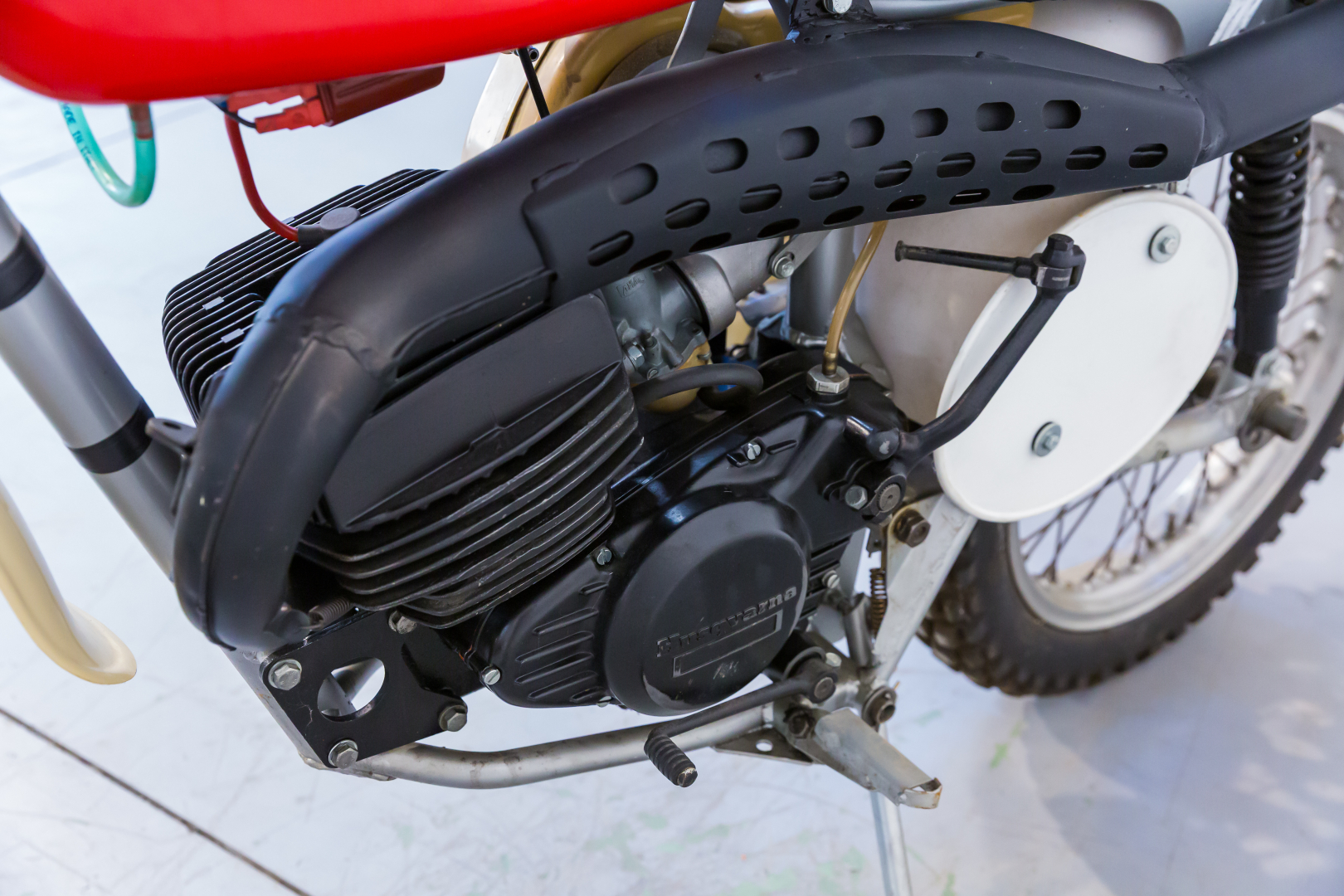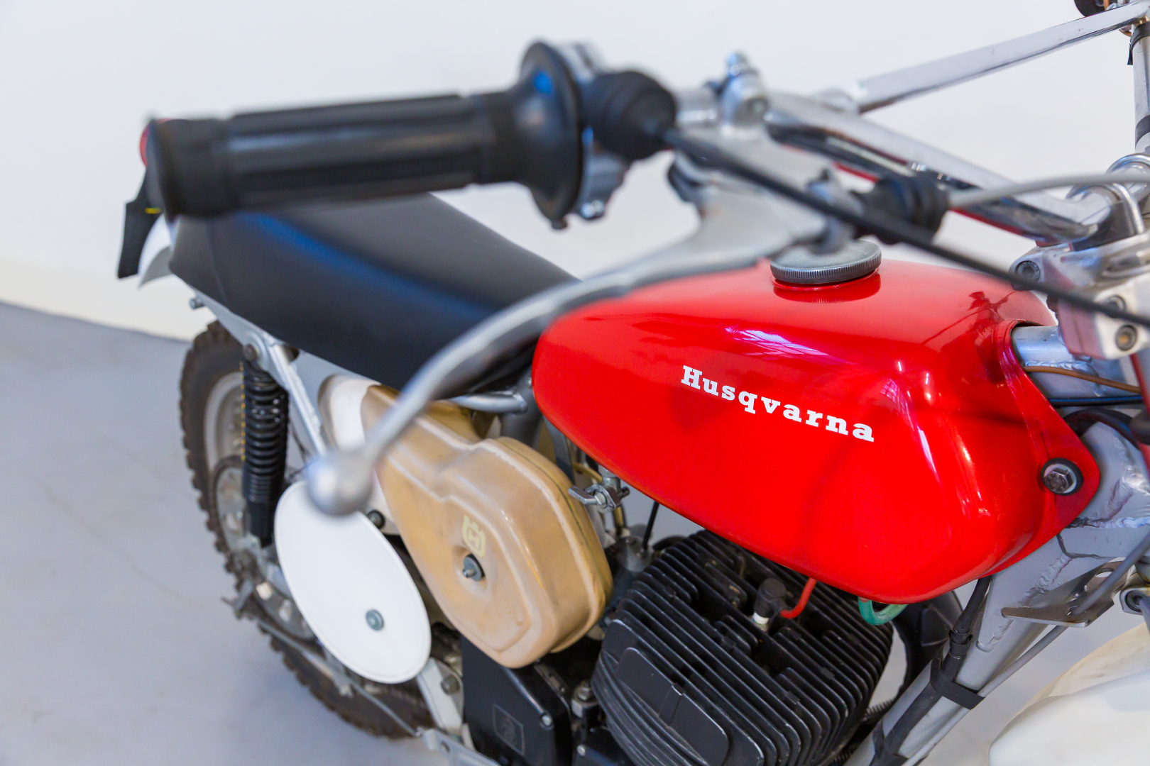 The model named SC of the famous Husqvarna 125 from the 1970s differs very little from the contemporary competition motocross model and is equipped with the electrical system and accessory services for road legalization; in practice, it is a competition bike also approved for road use, highly sought after by connoisseurs and fans of the iconic Swedish brand. Complete, in excellent condition. A general check is recommended before use.