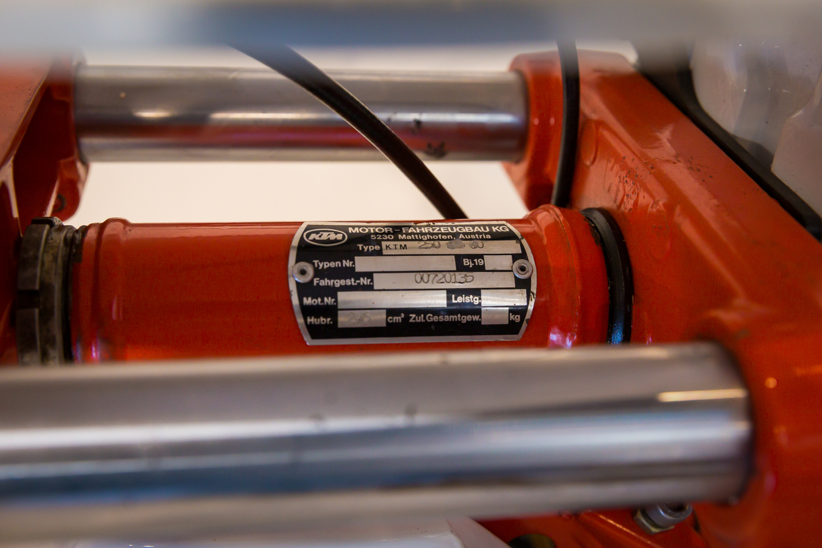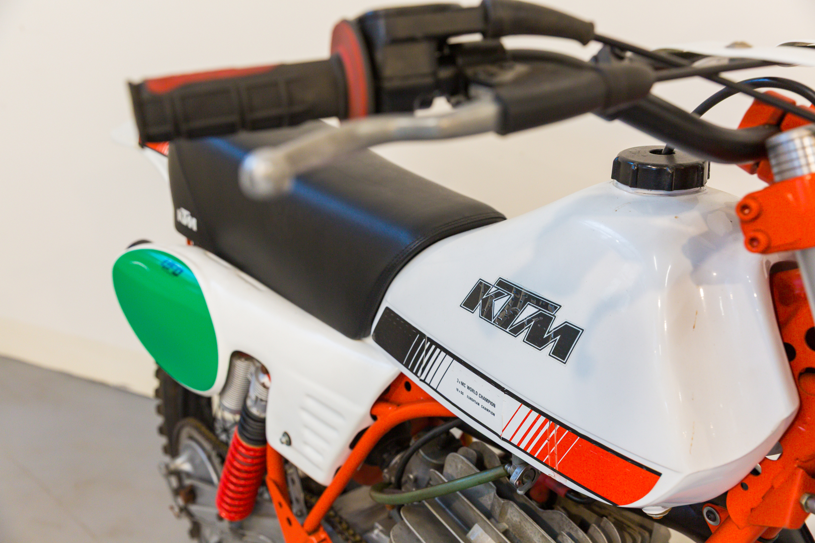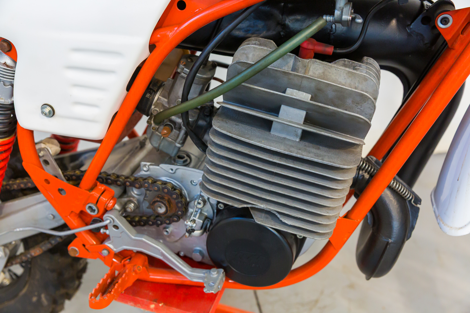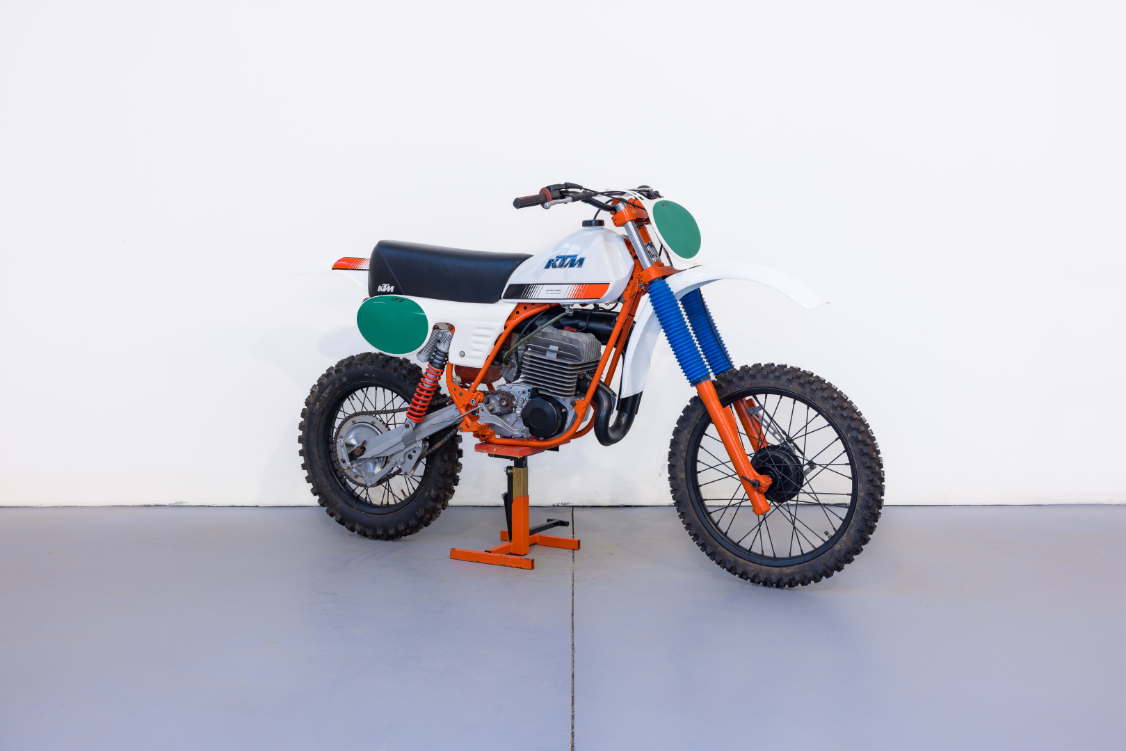 Motocross bike produced by KTM, the famous Austrian brand; the proposed model derives from the Enduro GS model, with a single-cylinder 2-stroke air-cooled engine, 6-speed gearbox. Top-level chassis, chromium-molybdenum steel frame, Marzocchi fork, rear swingarm with adjustable Marzocchi gas shocks. Complete, in excellent condition. A general check-up is recommended before use.