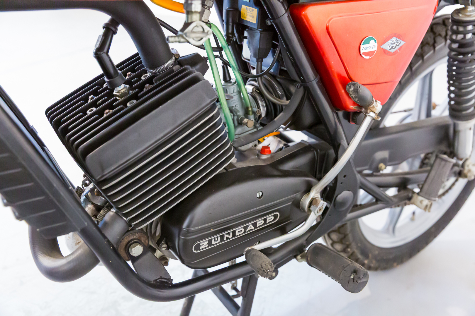 From 1978 to 1985, Laverda signed an agreement with German Zundapp to supply engines of various displacements for lightweight motorcycles produced at the Breganze factory. The models were identified with the LZ (Laverda – Zundapp) code, and the proposed bike is a 125cc with a liquid-cooled single-cylinder 2-stroke engine fitted into a generous chassis, making it a pleasant bike to ride. Complete, in good condition. For spare parts use.