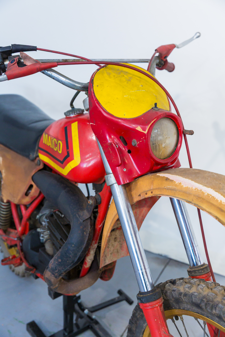 Brand founded in 1926 in Plaffingen, Germany, Maico was very active in the off-road sector starting from the 1970s, particularly with its models named CR for competition and GS for Regolarità (Enduro). The offered GS is a 125, equipped with a single-cylinder 2-stroke engine with rotary disc intake, double cradle frame in steel tubes, leading-axle telescopic fork, and at the rear, a swinging arm with a pair of gas shock absorbers. Preserved, complete, in fair condition. A general check is recommended before use.