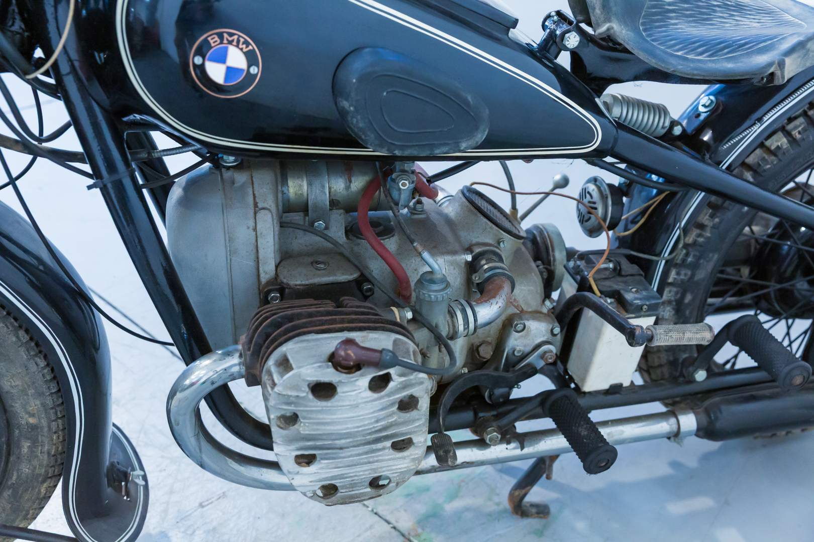 Historic Soviet motorcycle based on the design of the famous BMW R71, created for military purposes during the Second World War. Boxer twin-cylinder engine with 750cc displacement, it stands out for its robustness thanks to the frame and reinforced suspension to adapt them to the heaviest uses. Complete, preserved in good condition, with several parts from the contemporary BMW. A general check is recommended before use.