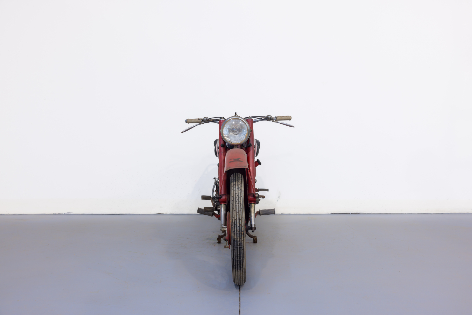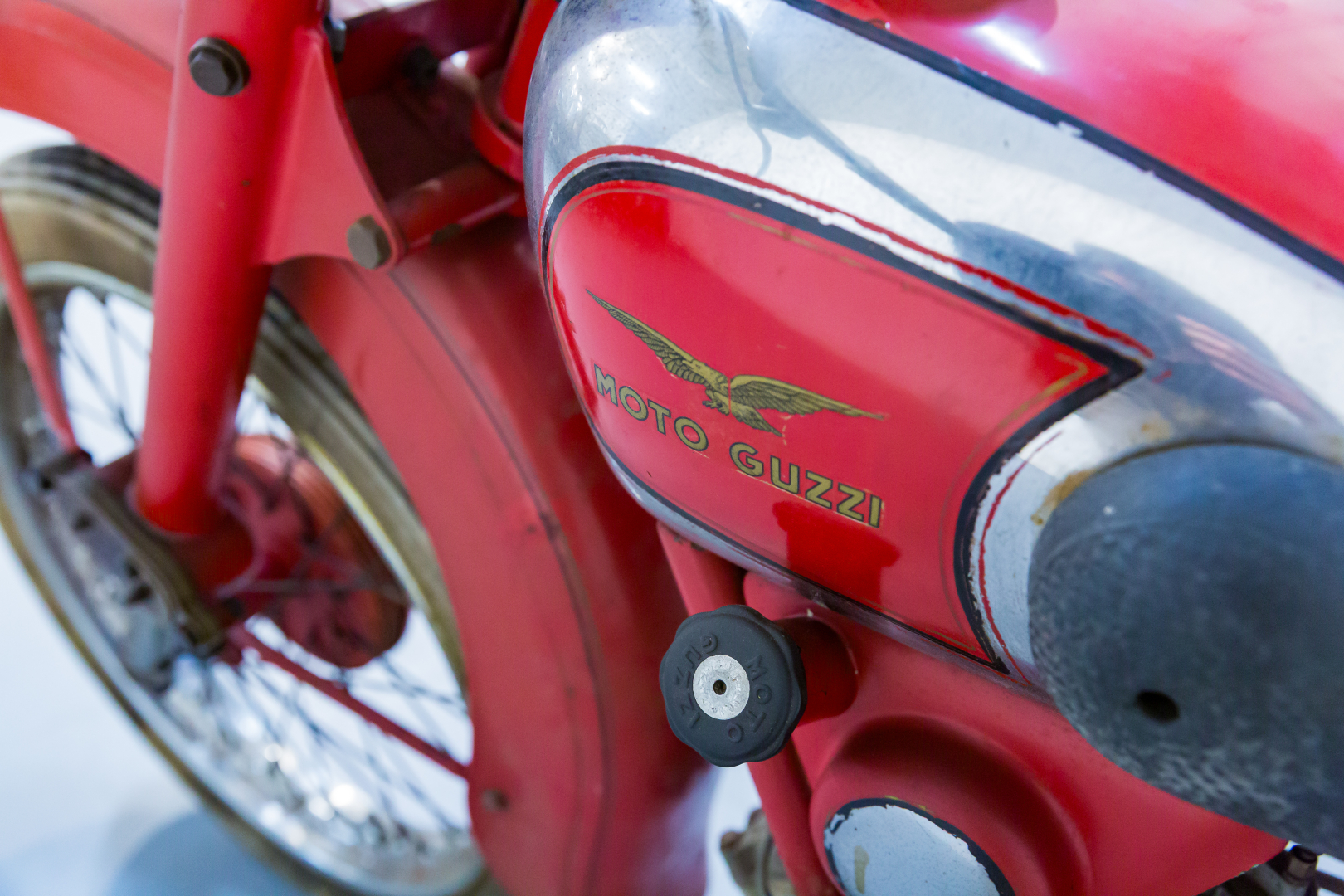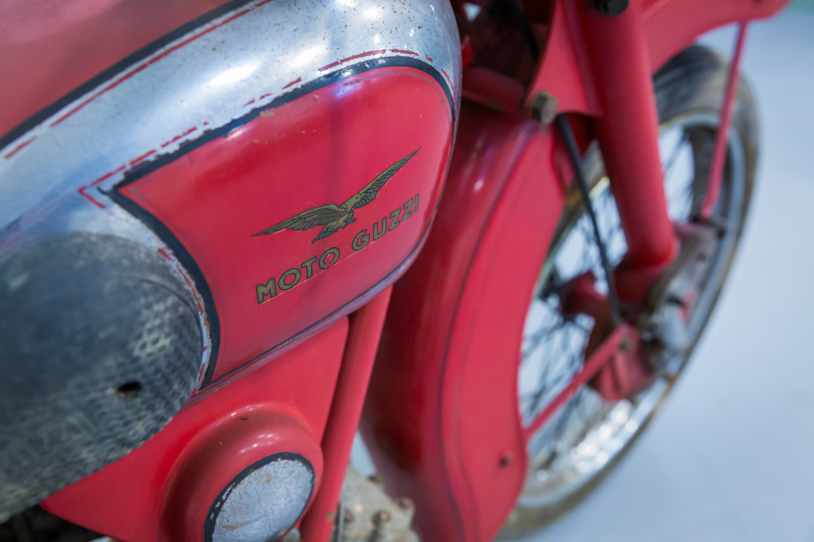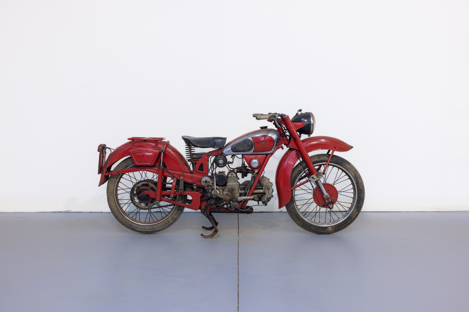 In 1948, Moto Guzzi resumed the model named the Airone, presented in 1939, and modernized it to make it more attractive. The famous horizontal single-cylinder saw the adoption of a light alloy cylinder head. Regarding the suspension, an inverted telescopic fork was adopted at the front, with an original anchor plate and a generous drum brake. At the rear, it featured a swinging arm with coil springs placed under the engine and a pair of supplementary shock absorbers fixed to the frame. Preserved, in fair condition, missing some components, suitable for a restoration project or for spare parts.