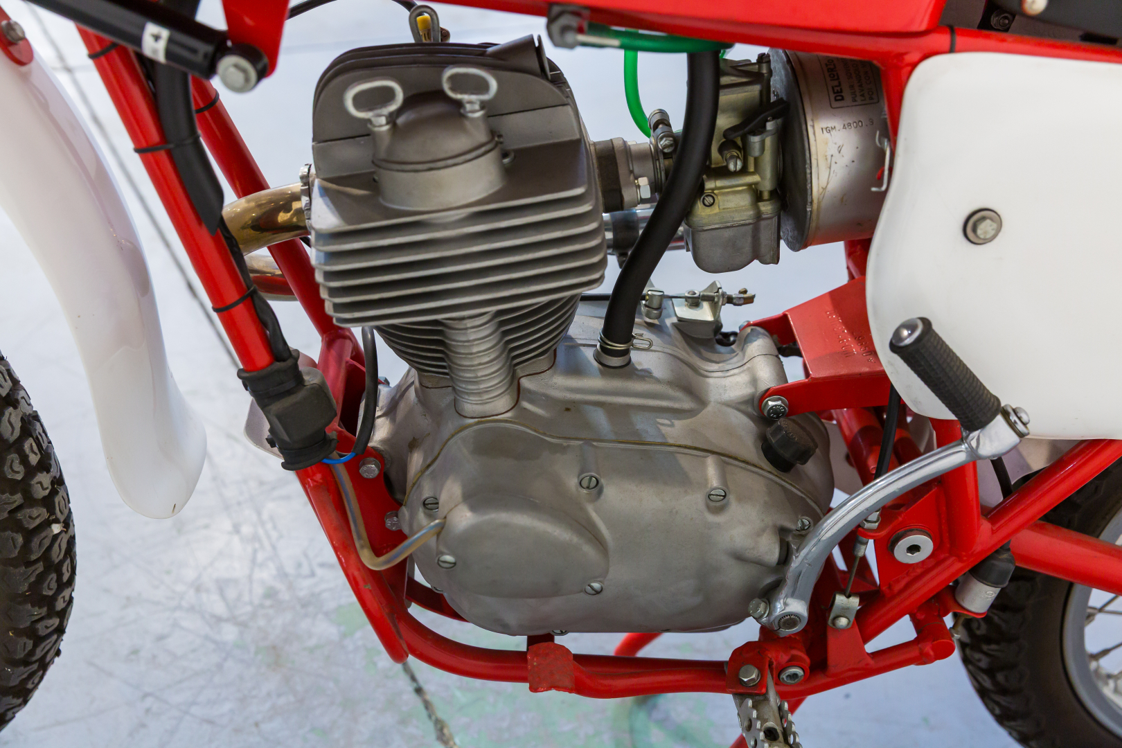 After the first 2-stroke motorcycles, Moto Morini's production shifted towards 4-stroke engines, and in the mid-1950s, the first 4-stroke model was presented. Other successful models followed over the years, such as the Corsaro 125. The Country model features a 4-stroke single-cylinder engine with pushrod and rocker distribution and a 5-speed gearbox. Double cradle frame in steel tubes, front suspension with tele-hydraulic fork, and rear with swinging arm and a pair of hydraulic shock absorbers, drum brakes, 19” front wheel, 18” rear wheel. Restored, equipped with a Verlicchi frame and several high-quality aftermarket components, in excellent condition. A general check is recommended before use.