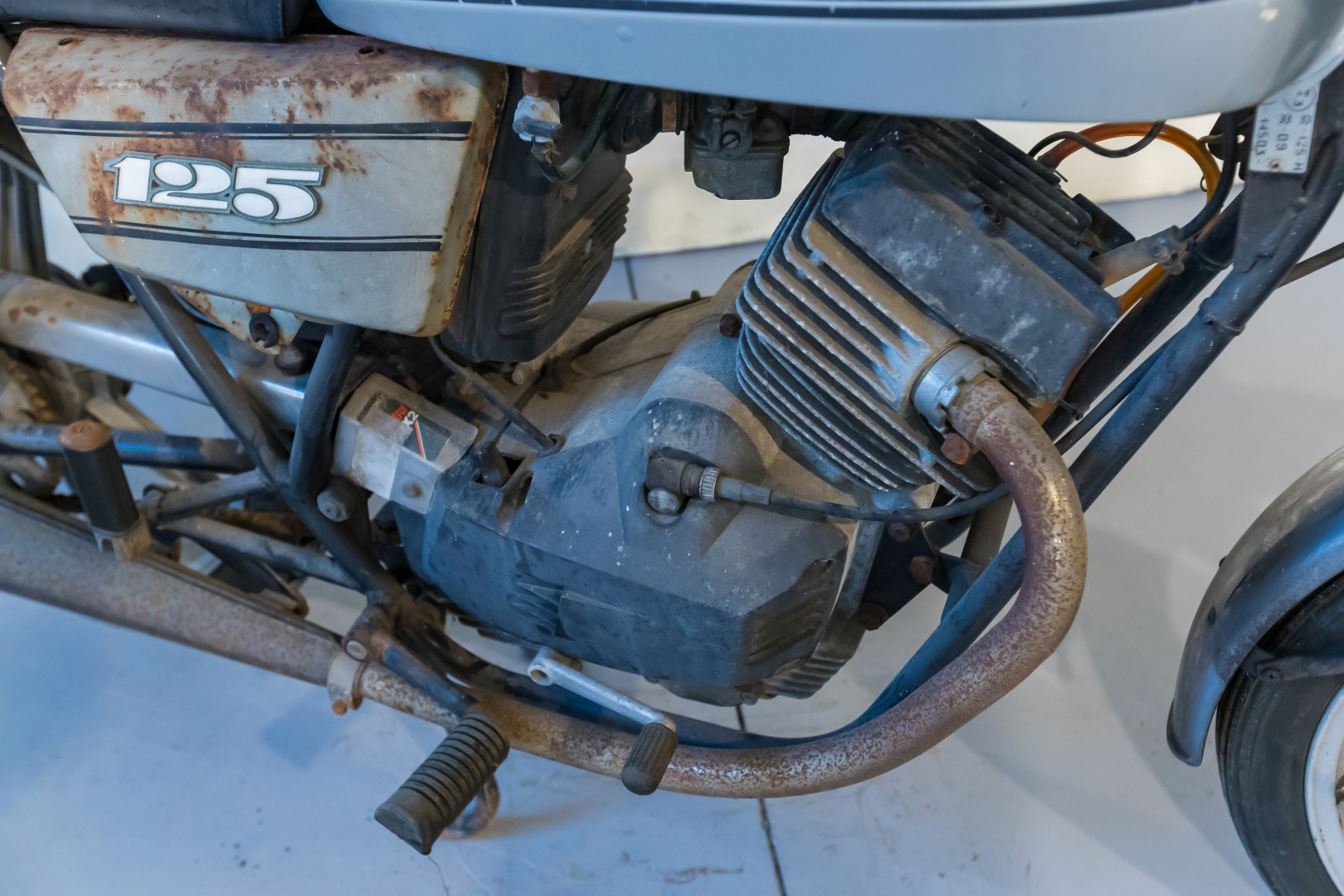 Double cradle frame in steel tubes, 18” wheels with light alloy rims, front disc brake, and rear drum brake. Fair condition, suitable for spare parts.