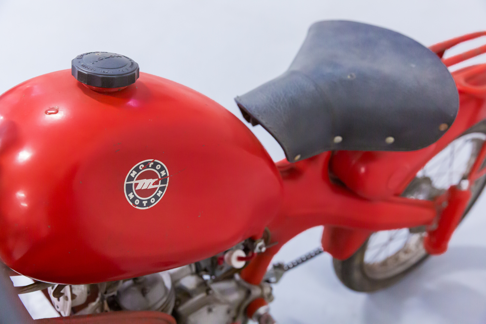 Motom began producing the famous 4-stroke mopeds of the successful 48 series in 1948: simple, economical, and robust bikes, everything needed to get the nation moving at low cost. The 48 LL, called Superelle, has the classic single-tube pressed sheet metal frame with telescopic fork; the engine is a classic 48cc 4-stroke single-cylinder OHV producing 2.2 HP, with a 3-speed handlebar gearshift operated by cables. Preserved, complete, in good condition. A general check-up is recommended before use.