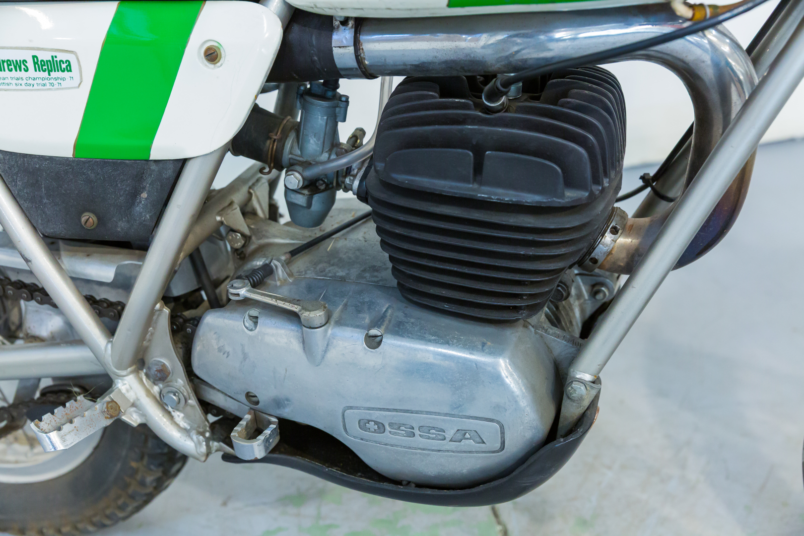 Among the most representative trial bikes of the early 1970s, the Spanish house Ossa secured a top position thanks to the very famous MAR 250, or "Mick Andrews Replica," identical to the bike that in the two-year period 1971/72 won the European Championship (only in '75 would it become World) thanks to the famous English champion, also winner of 6 editions of the prestigious Scottish Six Days Trial. Preserved, complete, excellent condition. ASI registered. A general check is recommended before use.