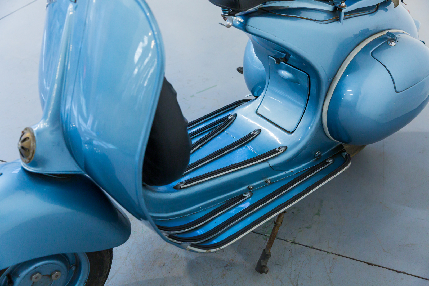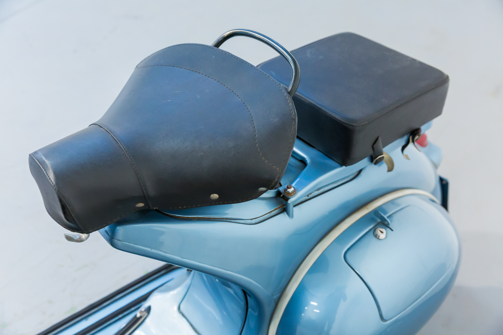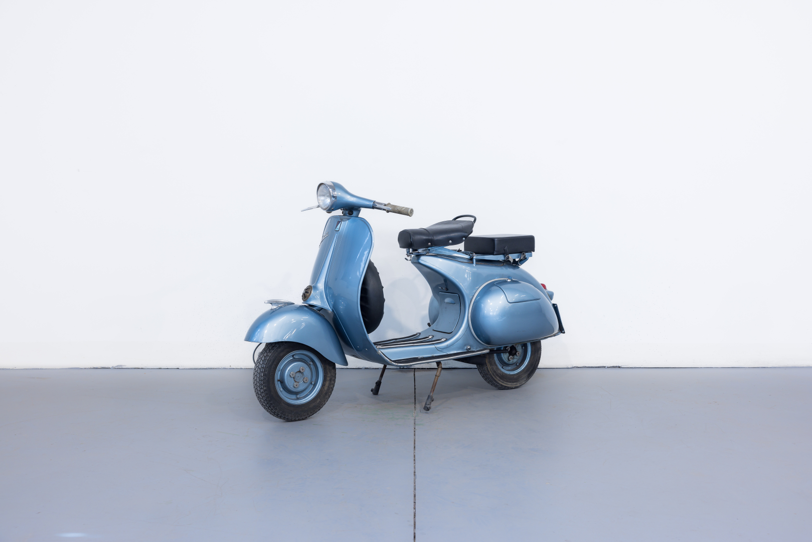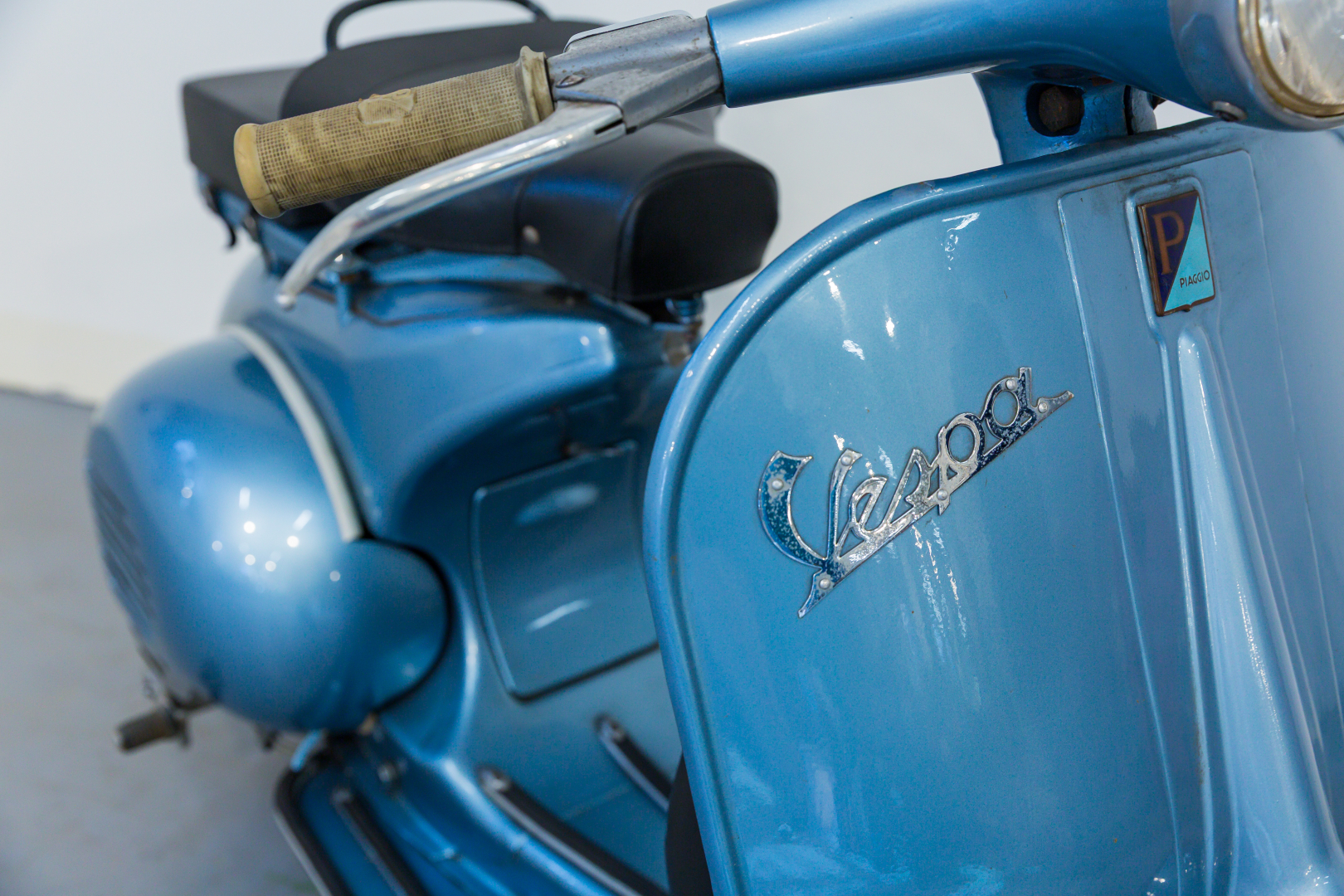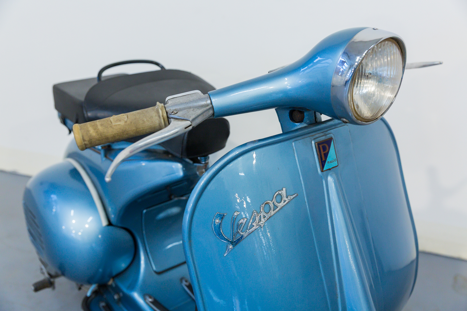 In 1957, Piaggio presented the Vespa 150 named the VBA 1 with an engine almost identical to the 1956 model named the VL3M, but with the MA19D carburetor variant. The handlebar has a new shape and is cast with ducting for the passage of all control cables; the headlight is enlarged and has a diameter of 115 mm. The gearbox is three-speed. Preserved, in excellent condition. A general check is recommended before use.