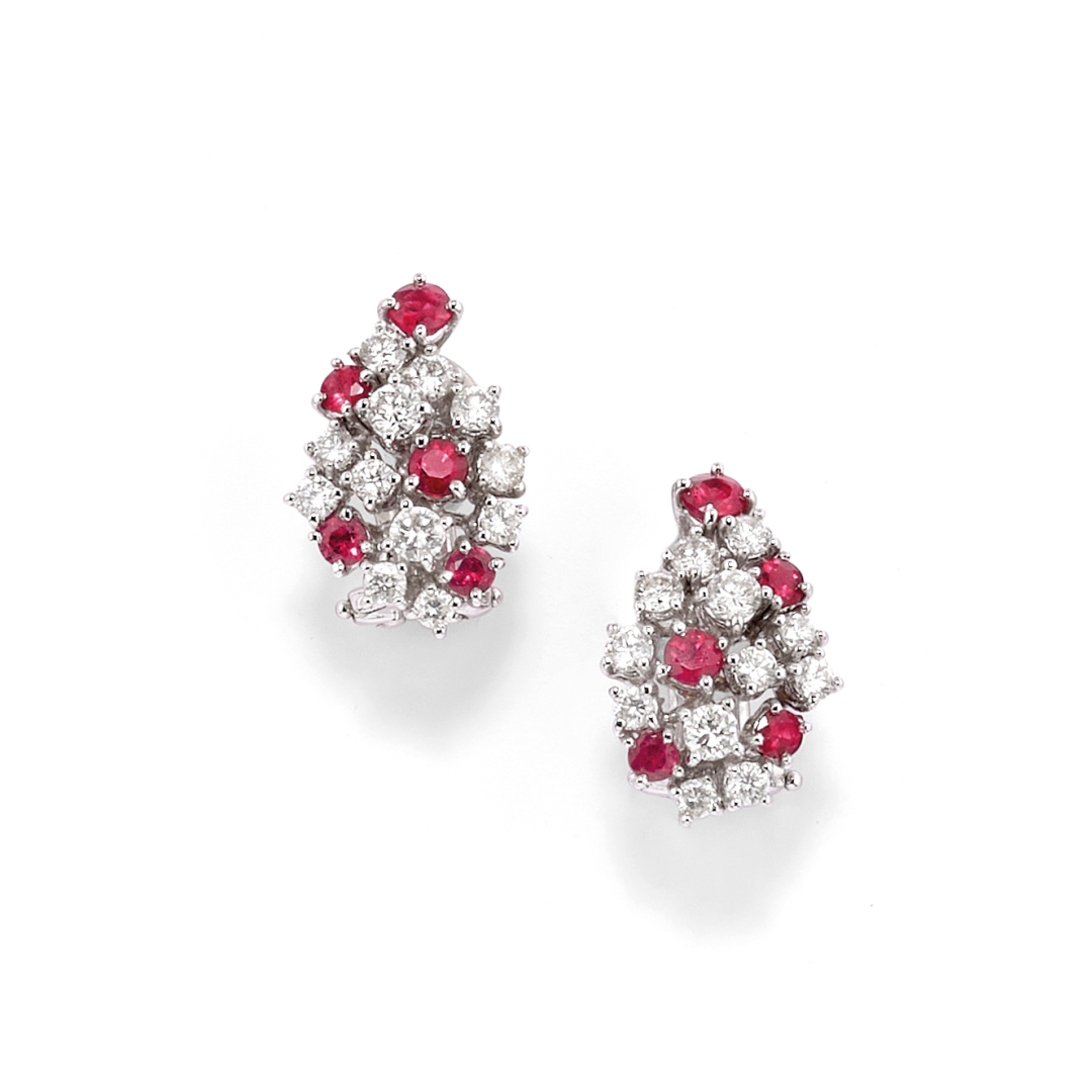 PAIO DI ORECCHINI A CLIP IN RUBINI E DIAMANTI, SCAVIA