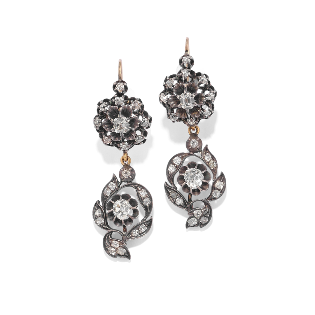 in silver with Old Mine- and point-cut diamonds weighing approx. 2.50 ct.
